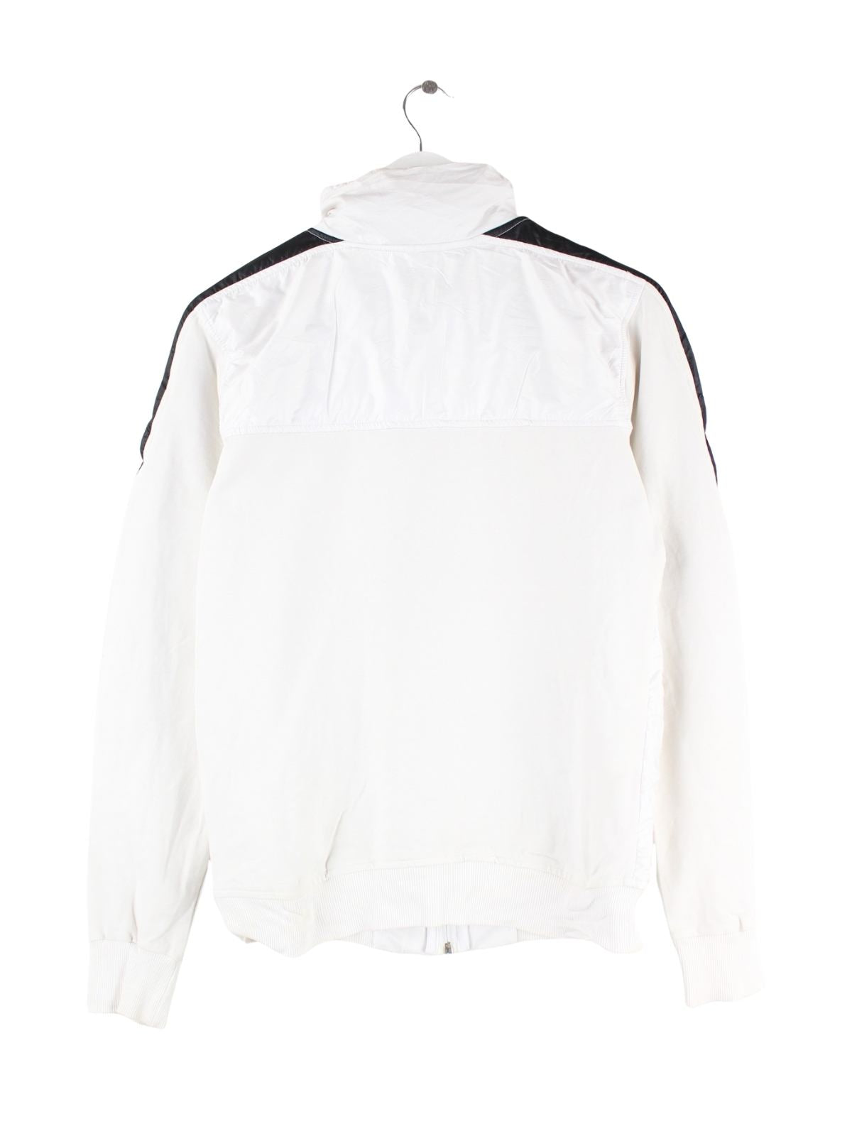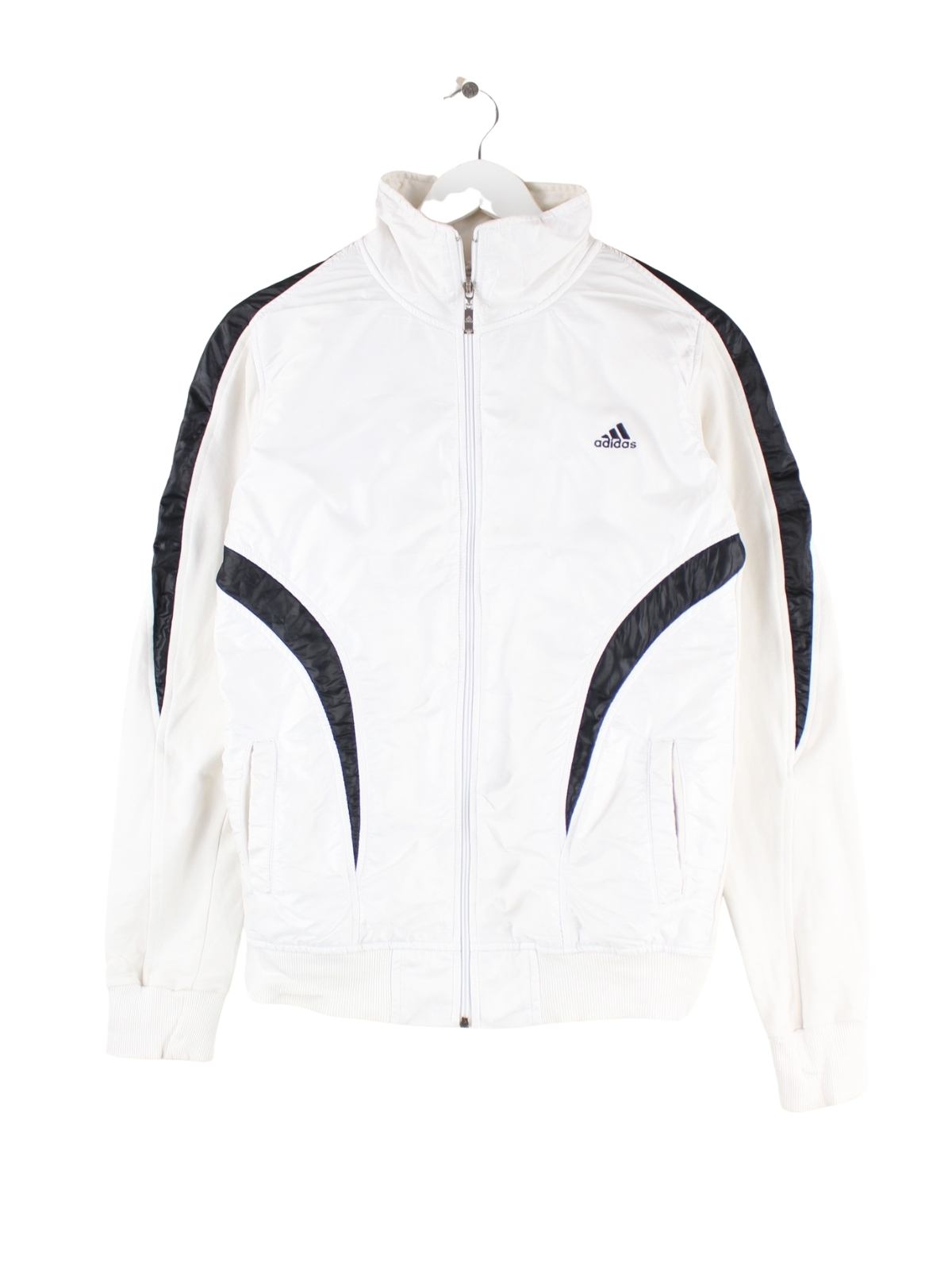 Trainingsjacke vom Brand Adidas in Größe M. Sie ist aus Synthetik angefertigt und in Weiß auf Lager.