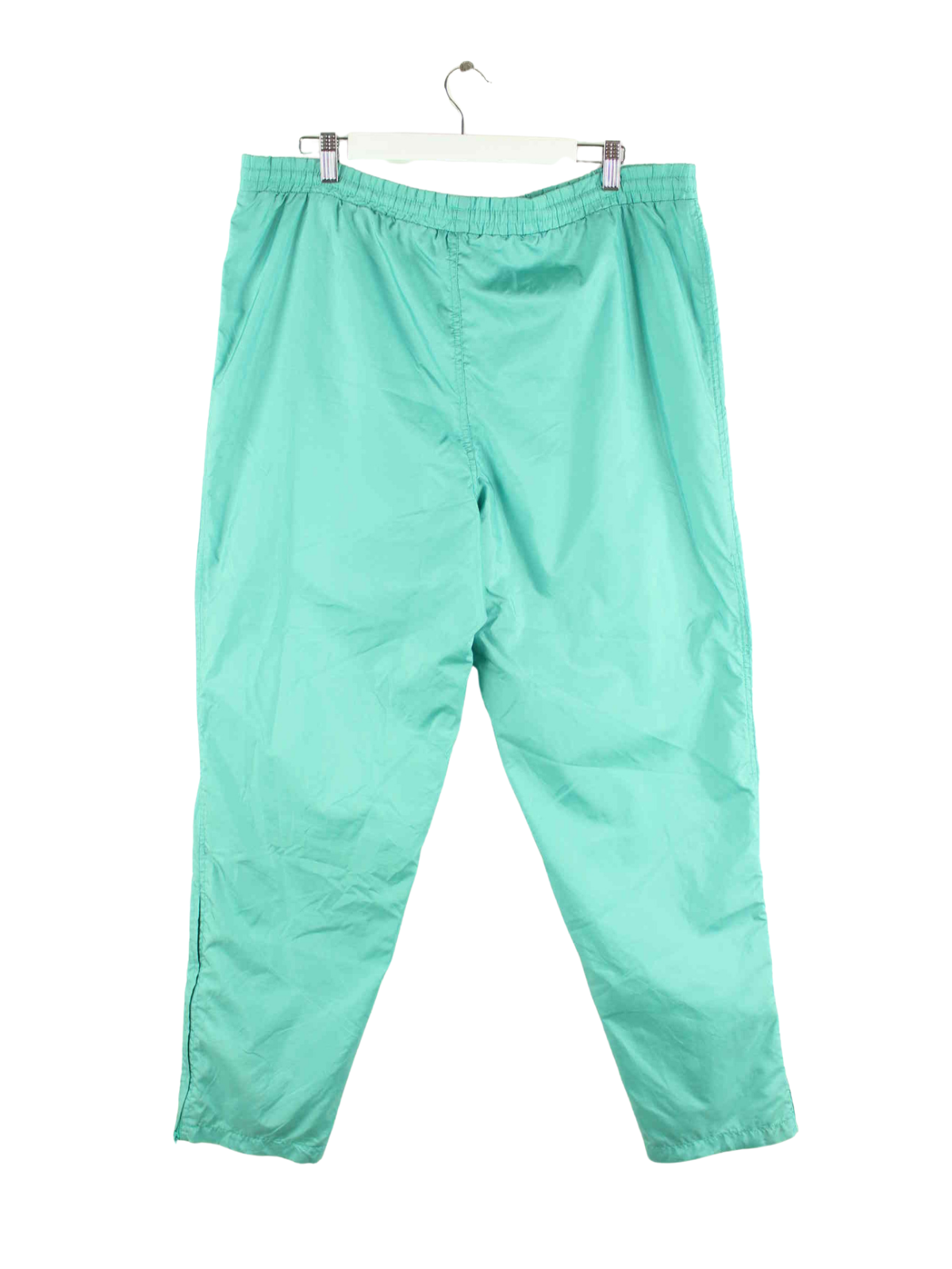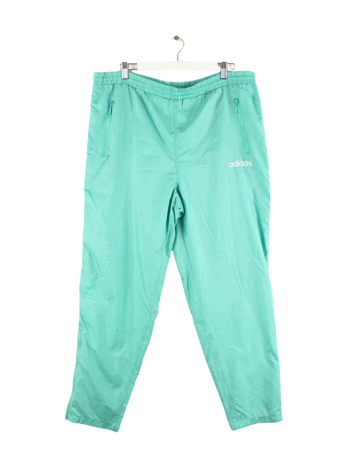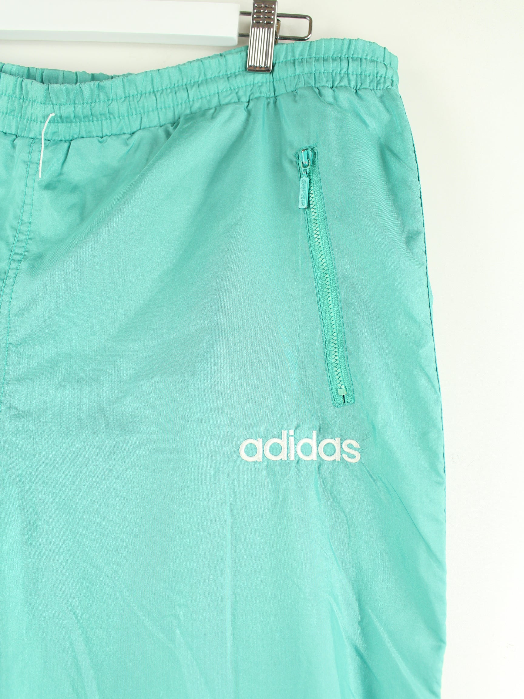 Türkisfarbene Track Pants mit Stickereien der Brand Adidas aus den 80'ern in Größe XL. Sie sind aus Synthetik gefertigt und in sehr gutem Zustand im Bestand.