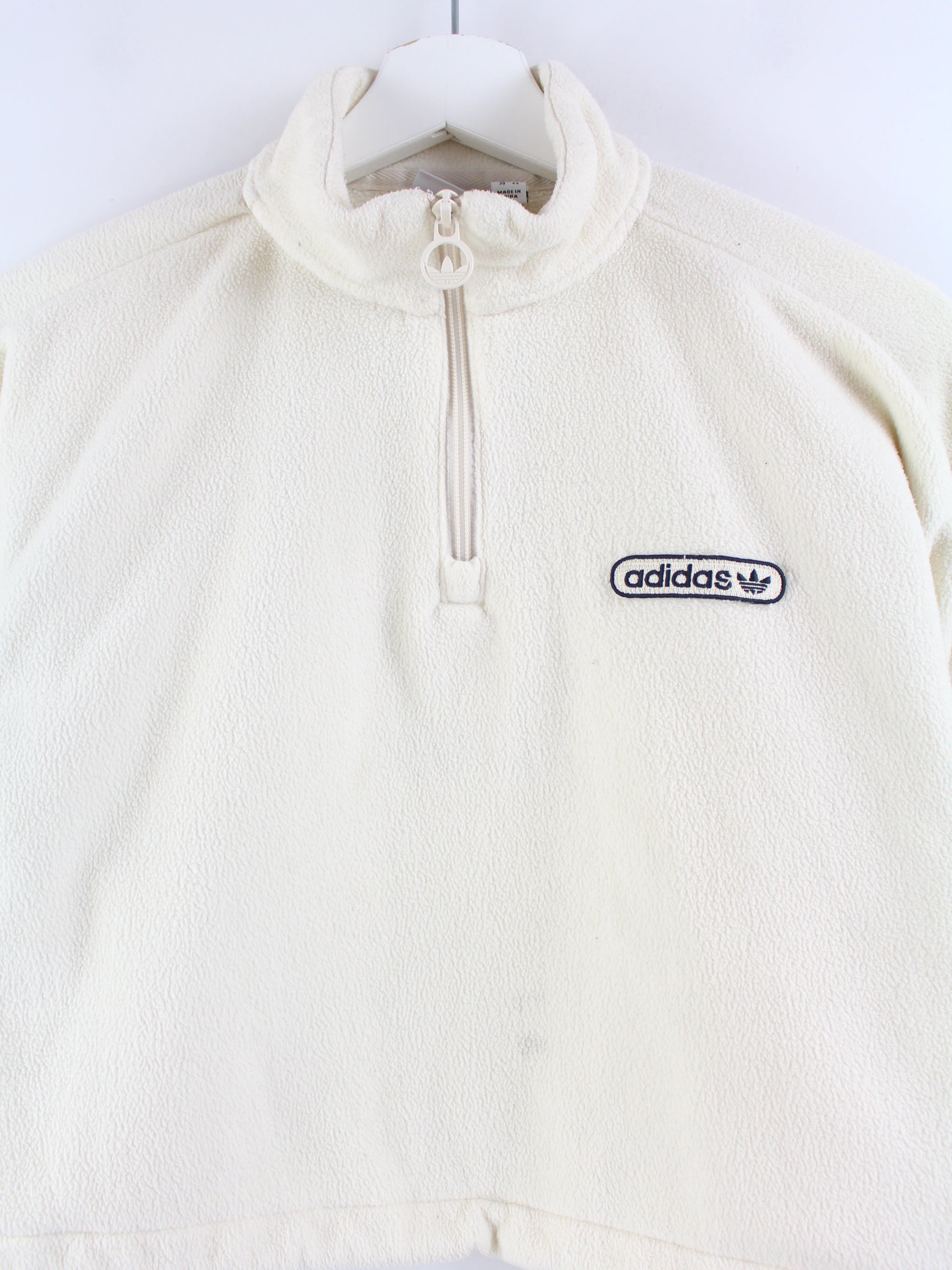 Sweater aus dem Hause Adidas mit Stick und halbem Reißverschluß in Größe M. Er ist aus angenehmem Fleece und in Beige zu bekommen.