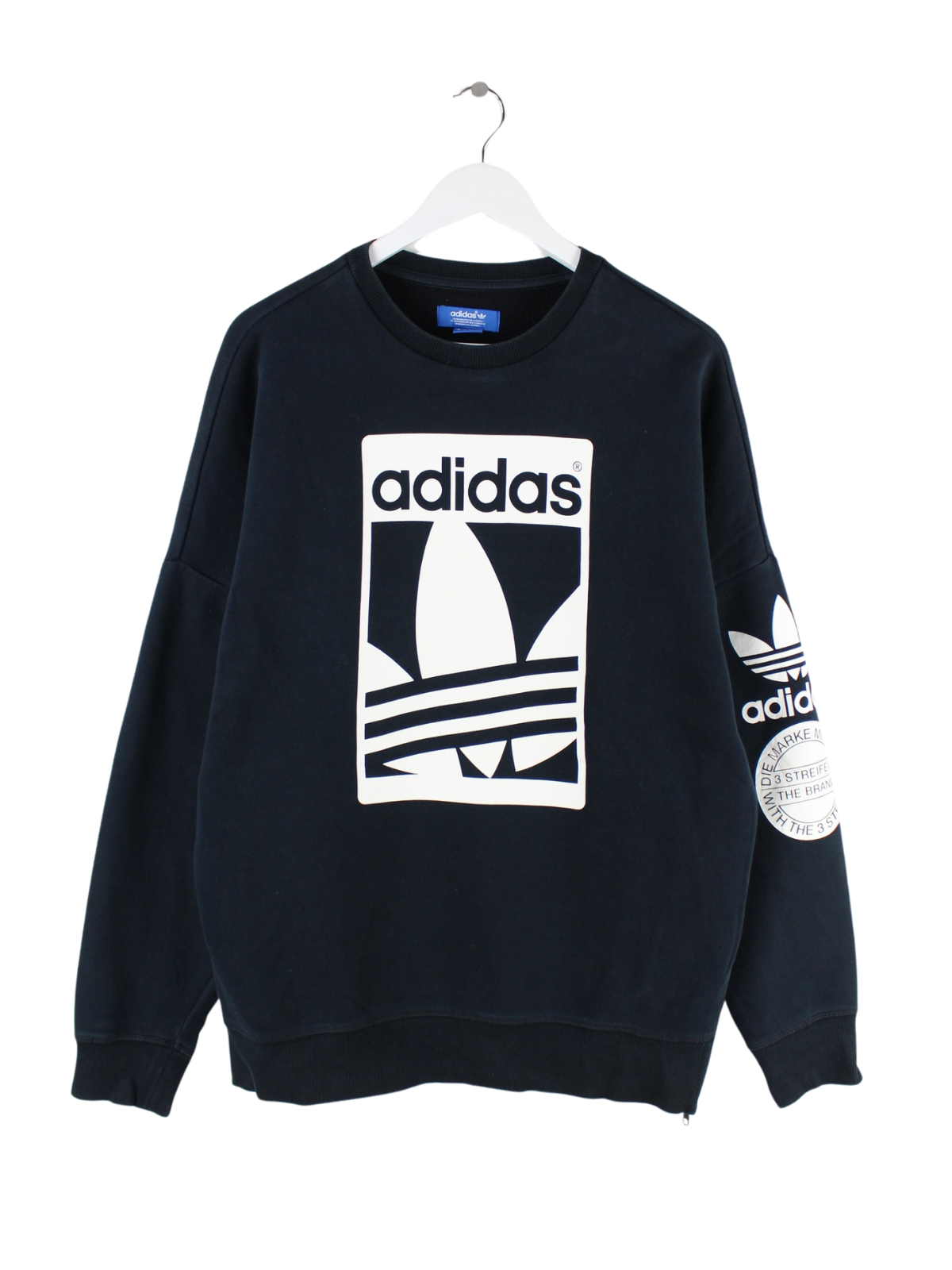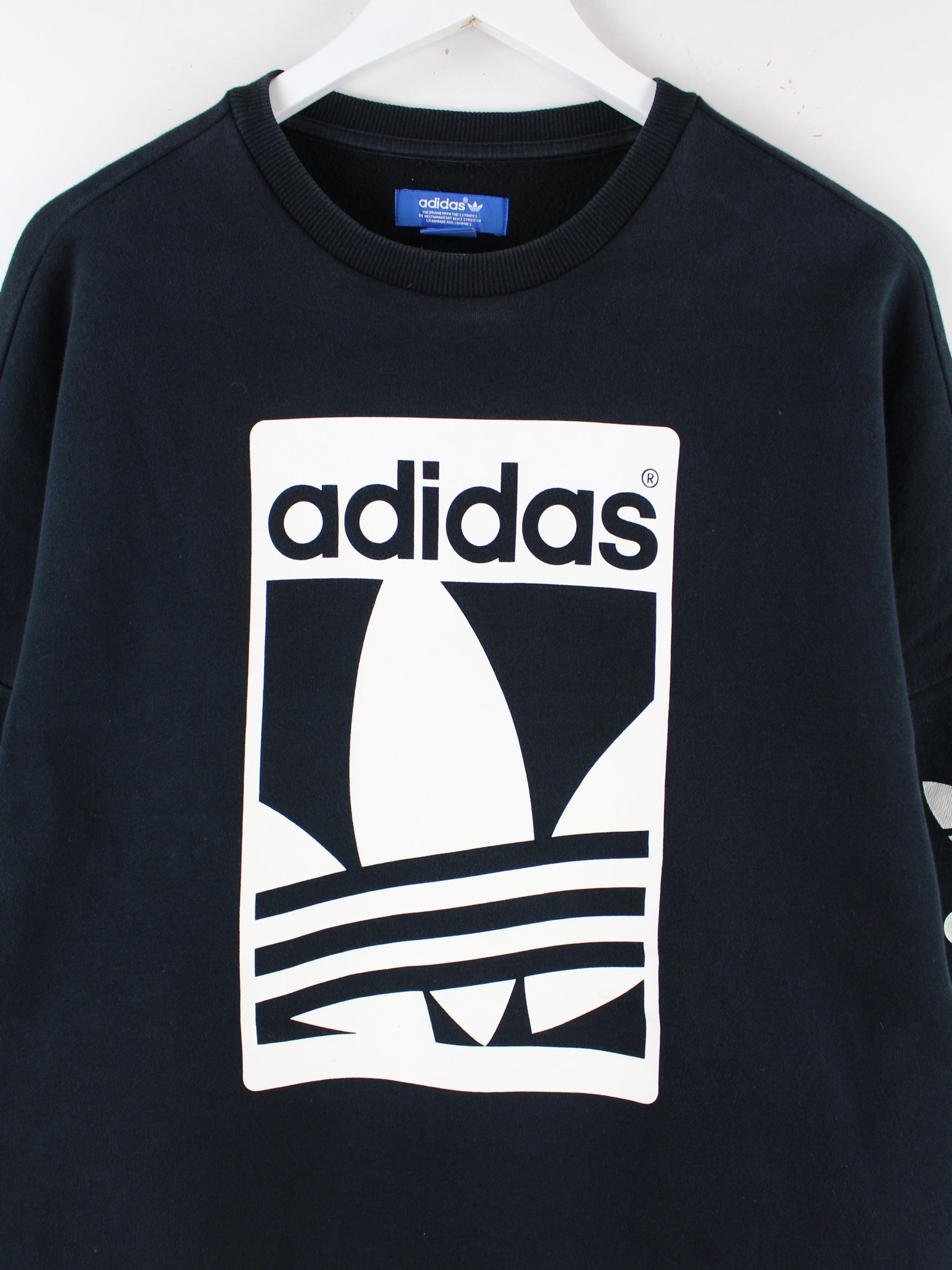 Sweater der Brand Adidas in Größe L. Er ist aus einer Baumwollmischung hergestellt und in Schwarz bei uns vorrätig. Mit tollem Trefoil Print.