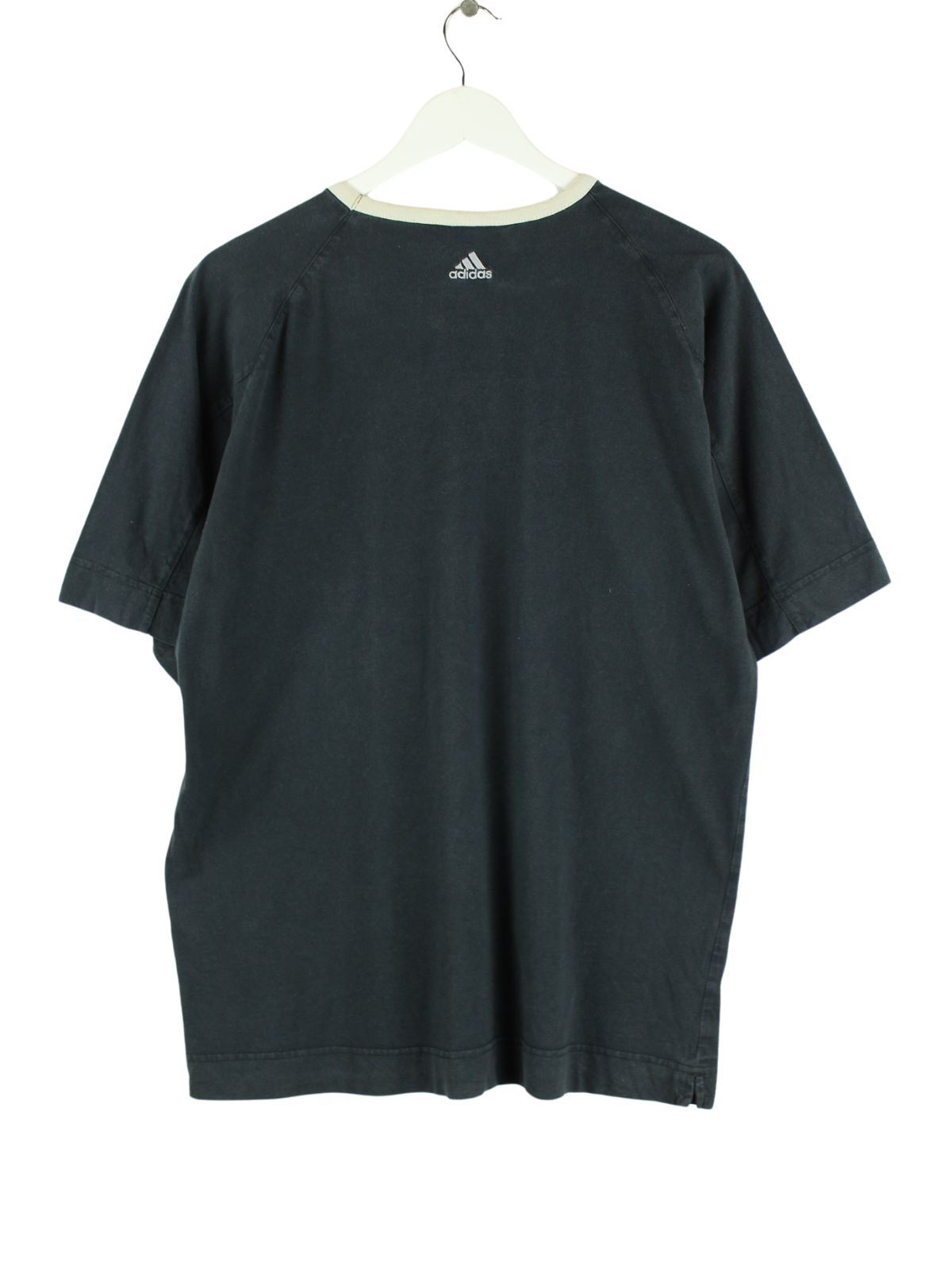 T-Shirt aus dem Hause Adidas in Größe XL aus Anfang der 2000'er. Es ist aus Baumwolle hergestellt und in Grau bei uns zu bekommen. Mit tollem y2k Print.