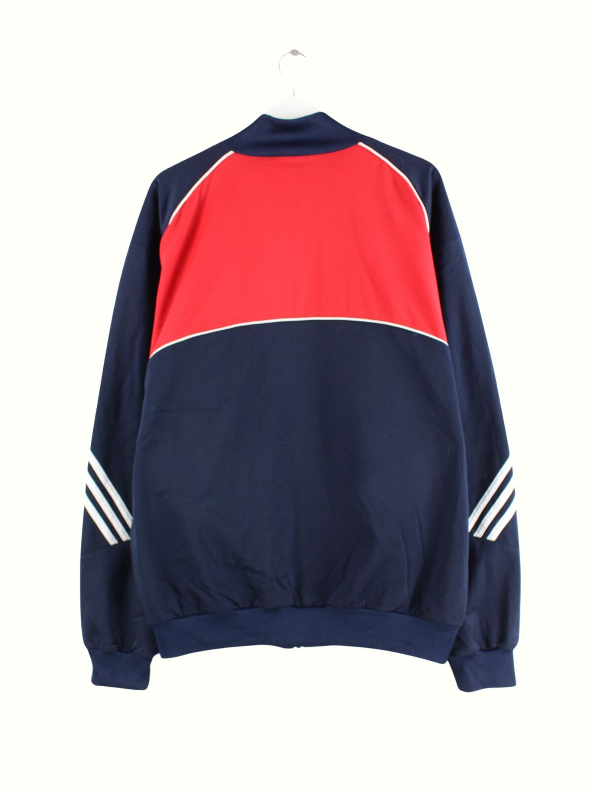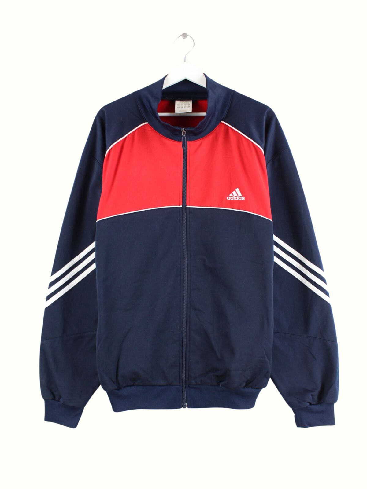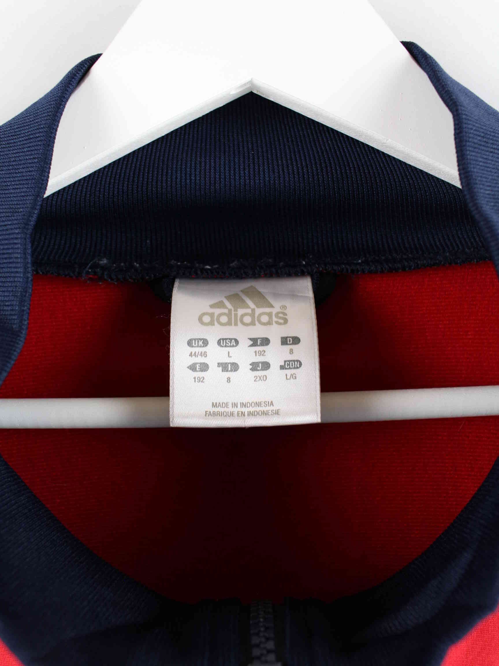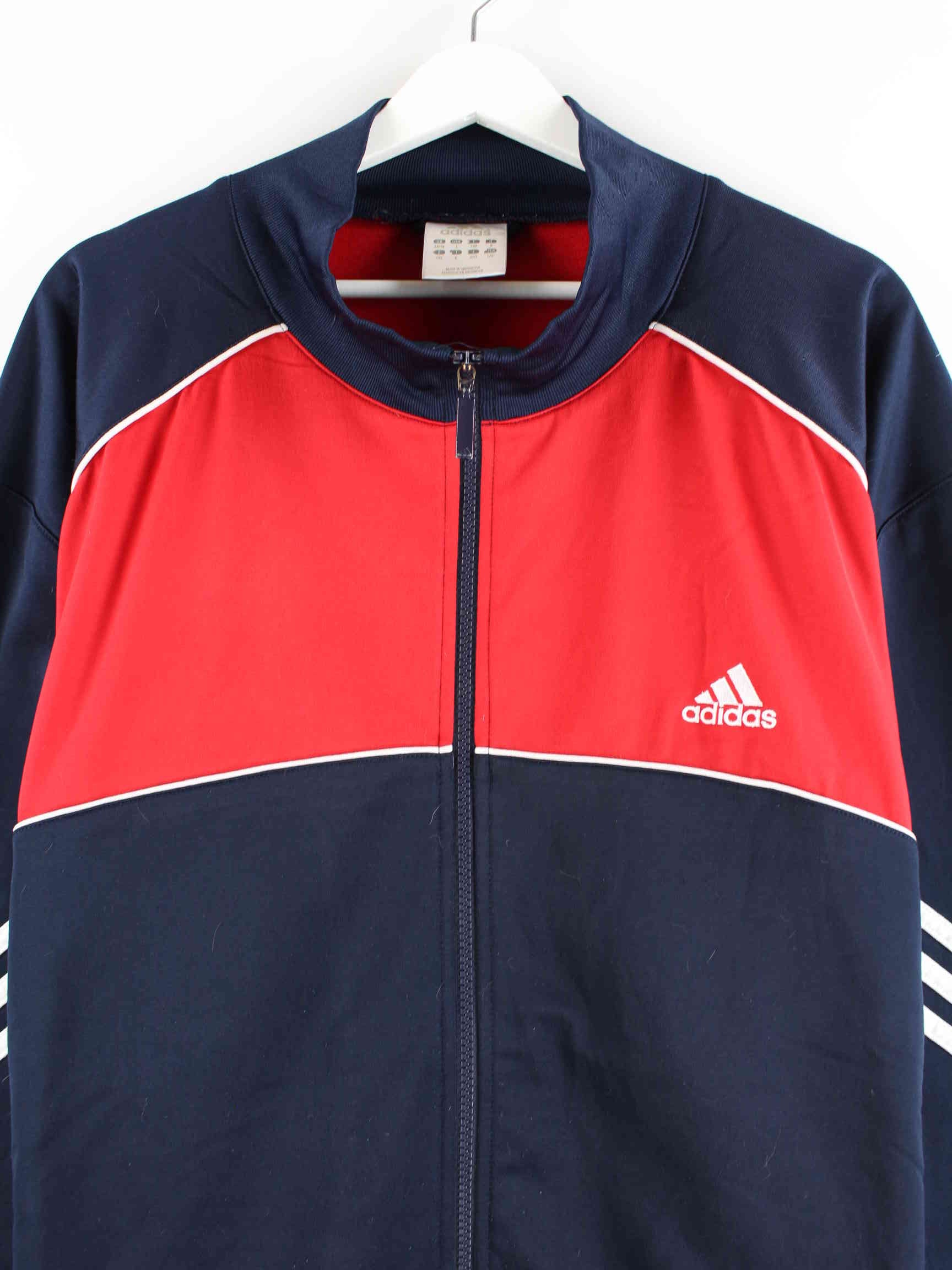 Blaue Trainingsjacke von Adidas aus Anfang der 2000'er in Größe XL. Sie ist aus Synthetik hergestellt und in sehr gutem Zustand vorrätig.