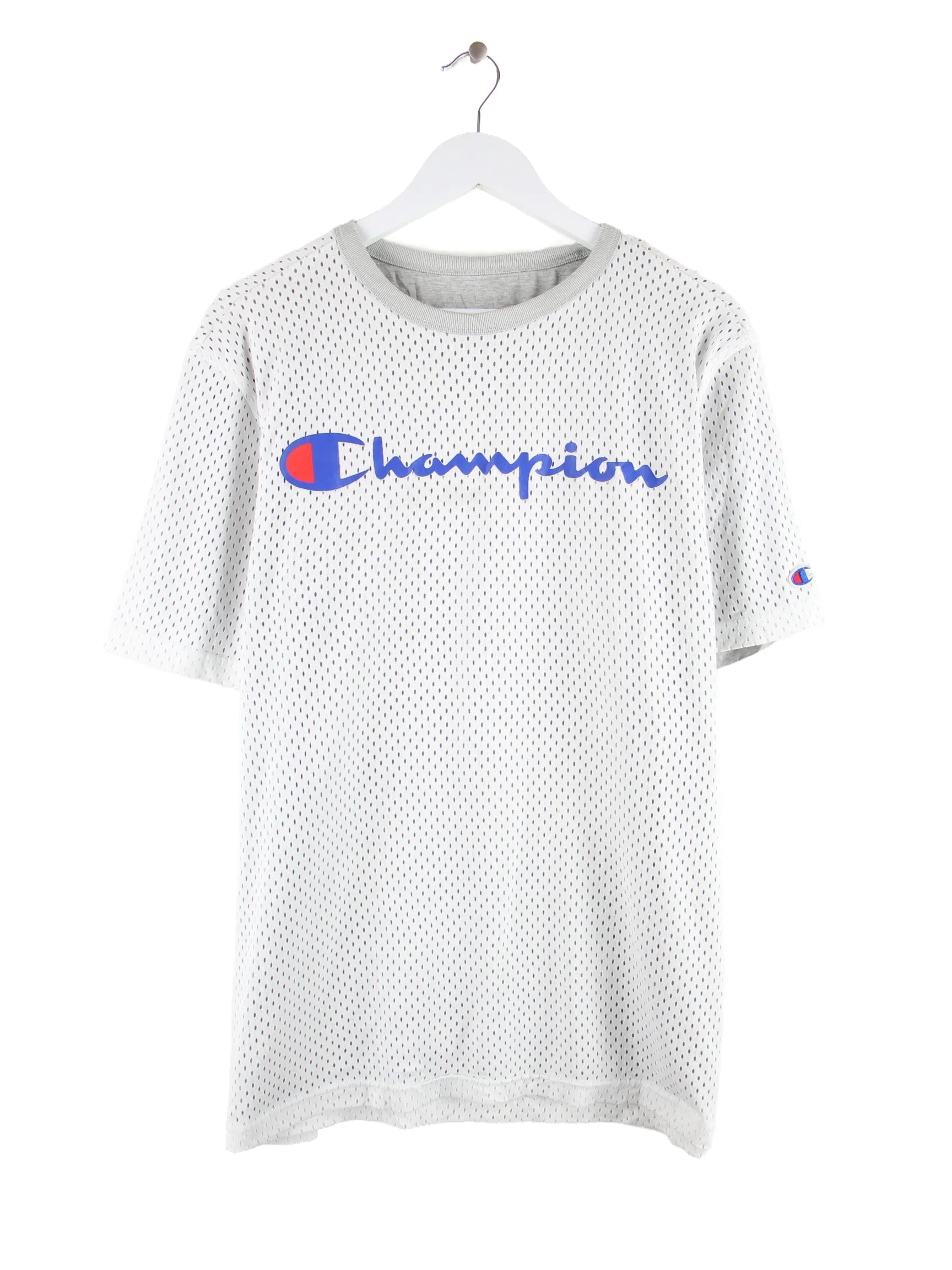 Weißes Trikot vom Label Champion in Größe L. Es ist aus Synthetik hergestellt und in gutem Zustand im Angebot.