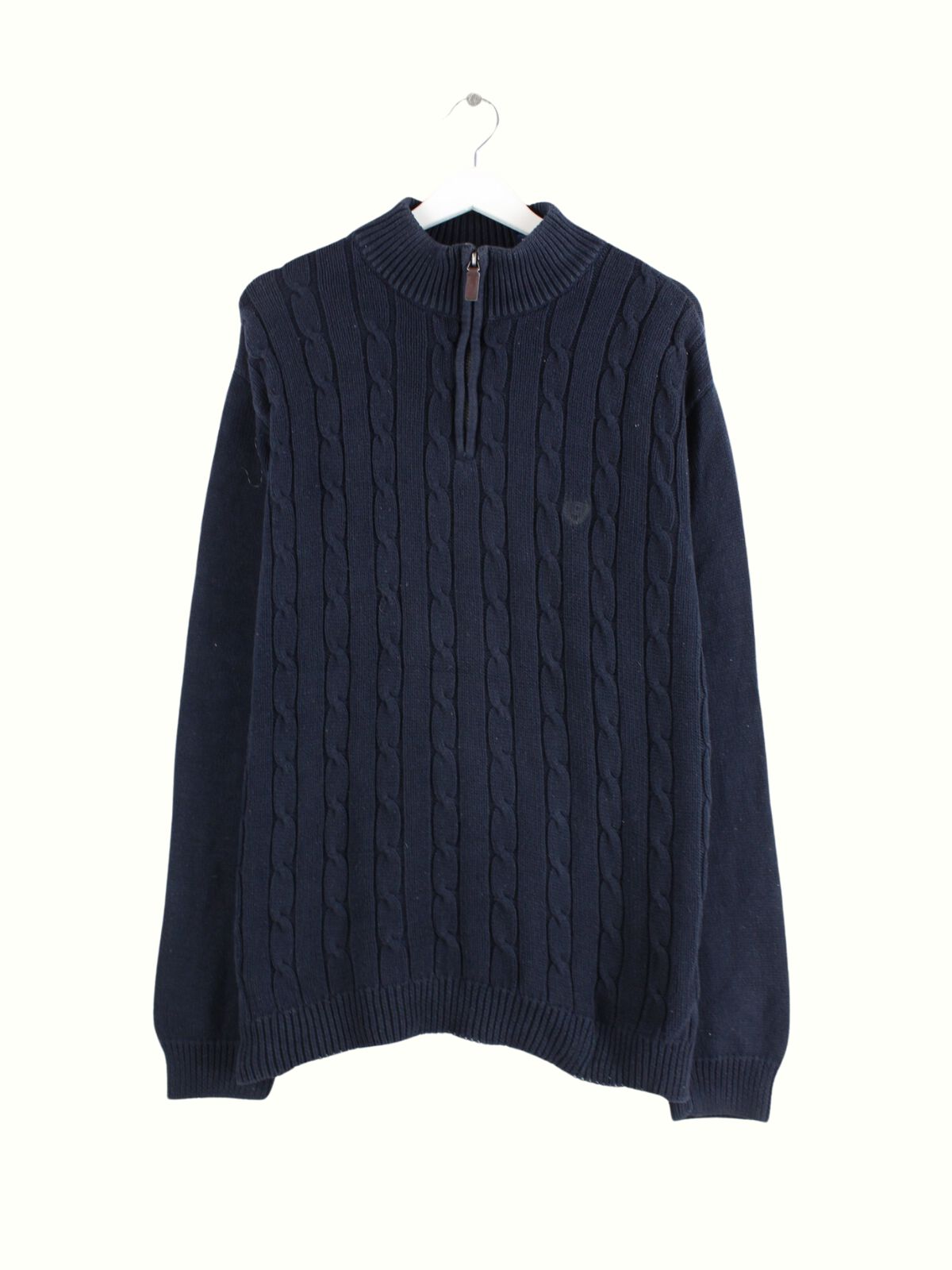 Pullover aus dem Hause Chaps by Ralph Lauren mit half Zip in Größe L. Er ist aus Baumwolle hergestellt und in Blau auf Lager.
