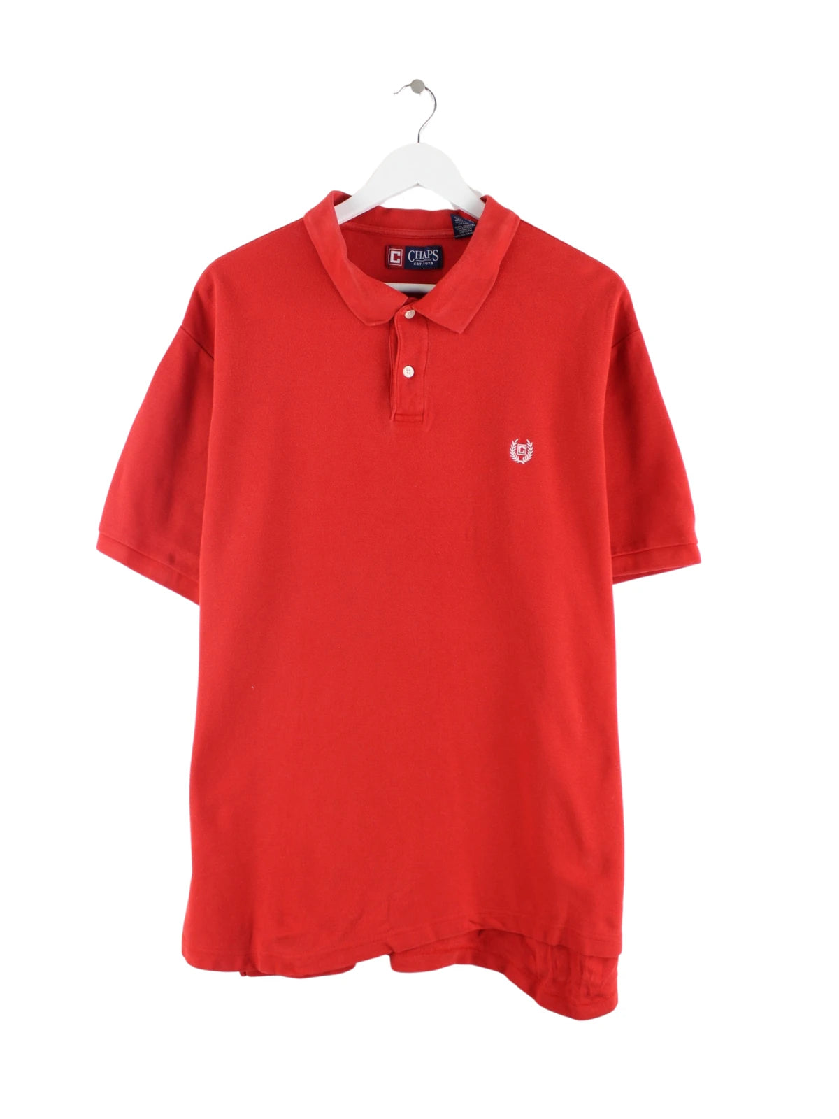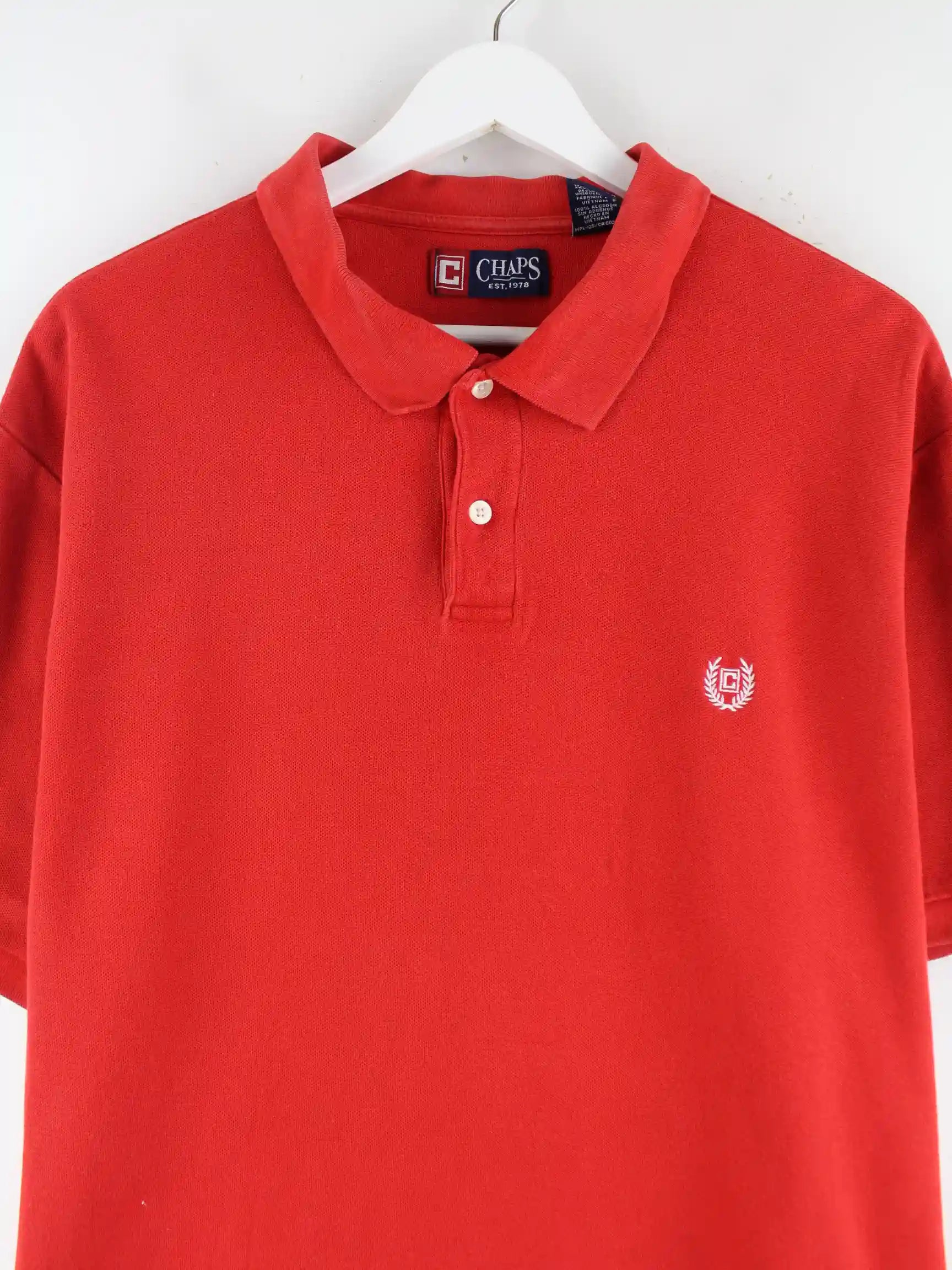 Rotes Poloshirt aus dem Hause Chaps by Ralph Lauren in Größe XXL. Es ist aus Baumwolle produziert. Den Zustand würden wir als 'In Ordnung' bezeichnen (vergl. Bilder).