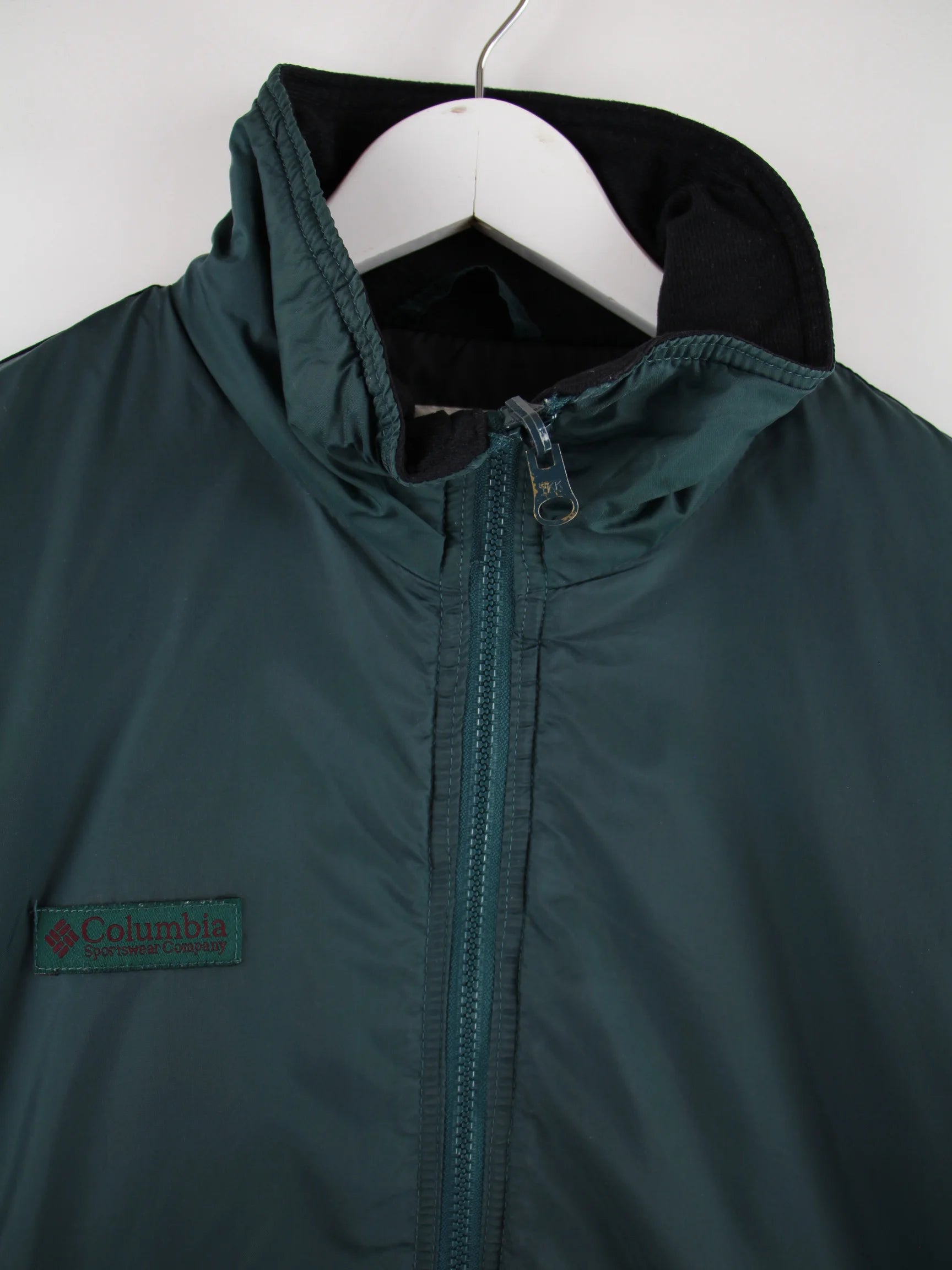 Grüne Jacke von Columbia aus den 90'ern in Größe M. Sie ist aus Synthetik gemacht und in gutem Zustand bei uns vorrätig.