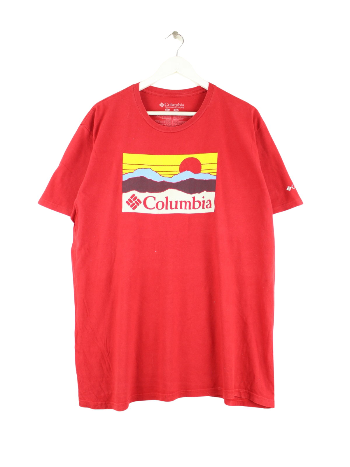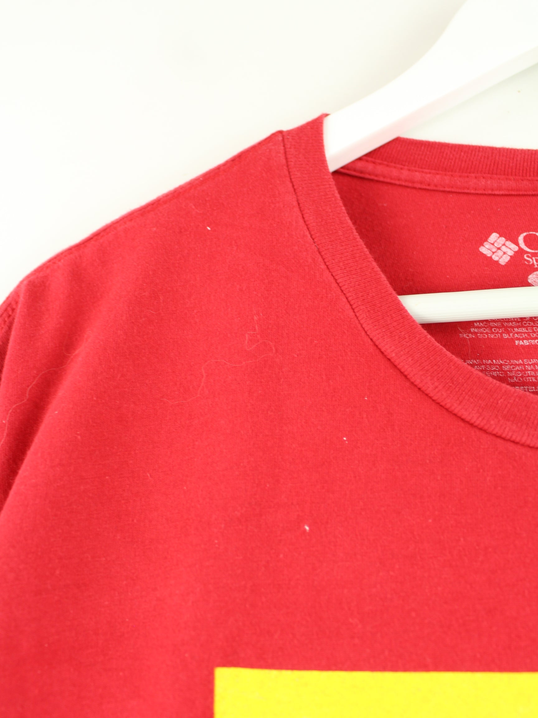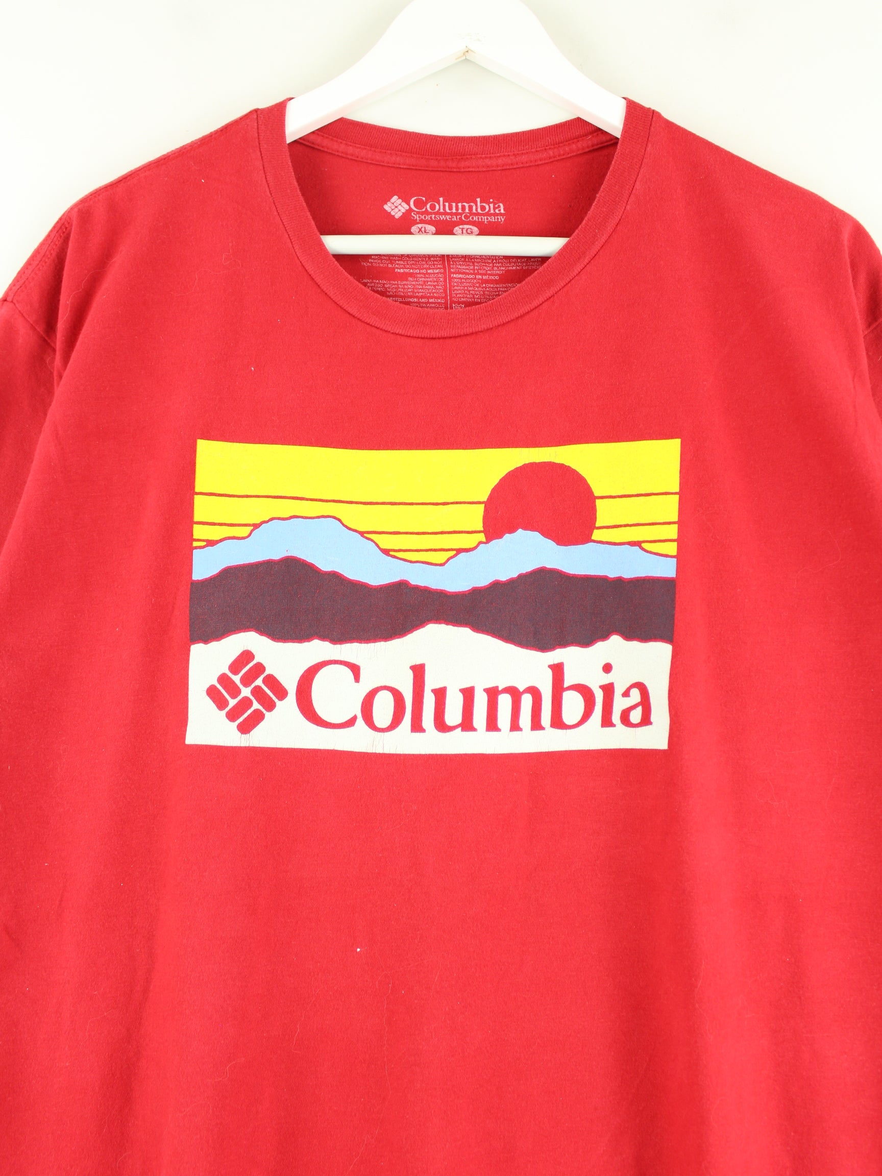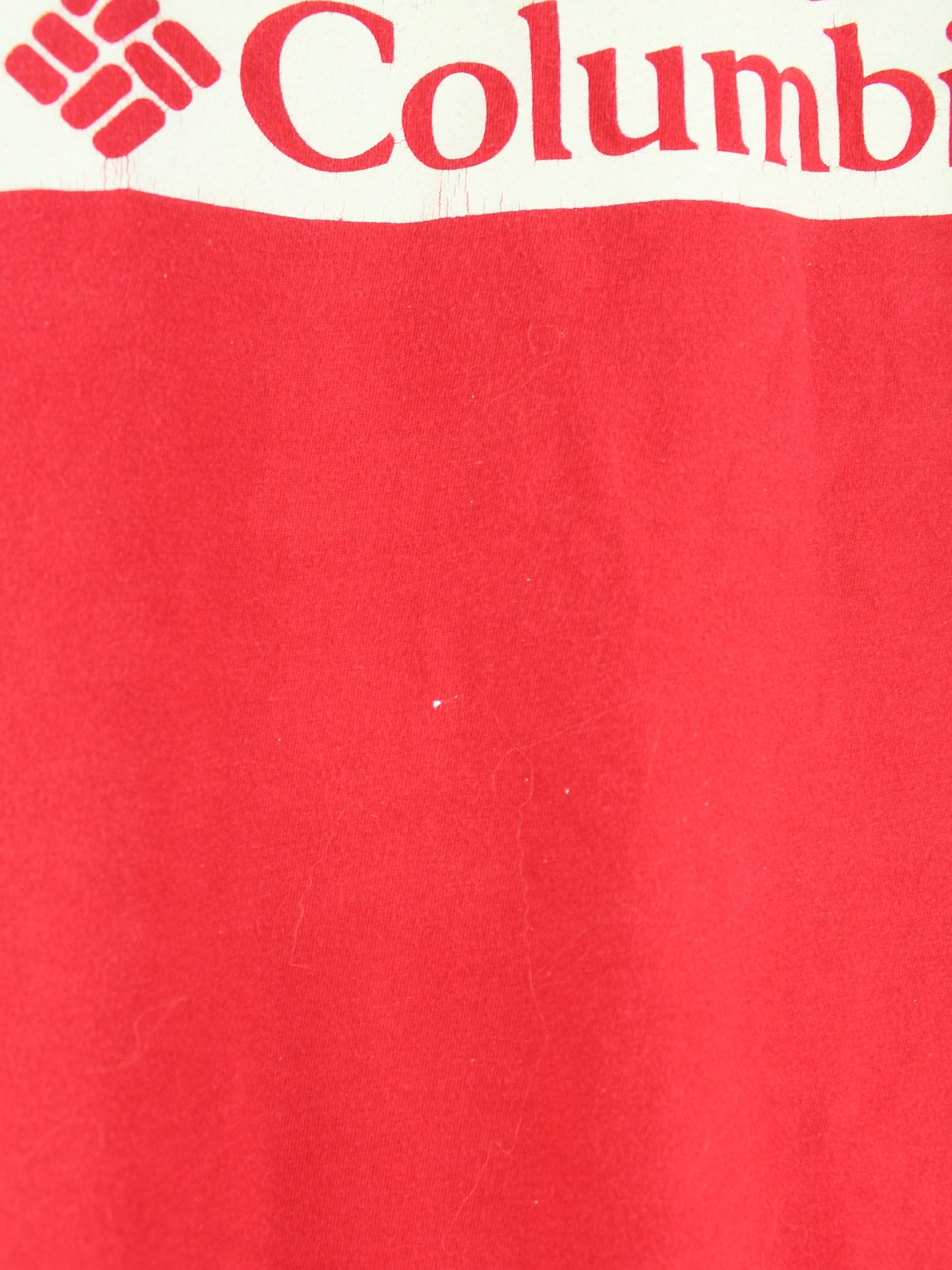 Rotes T-Shirt der Brand Columbia in Größe XL. Es ist aus Baumwolle gefertigt und in gutem Zustand bei uns zu bekommen. Mit seltenem Print.