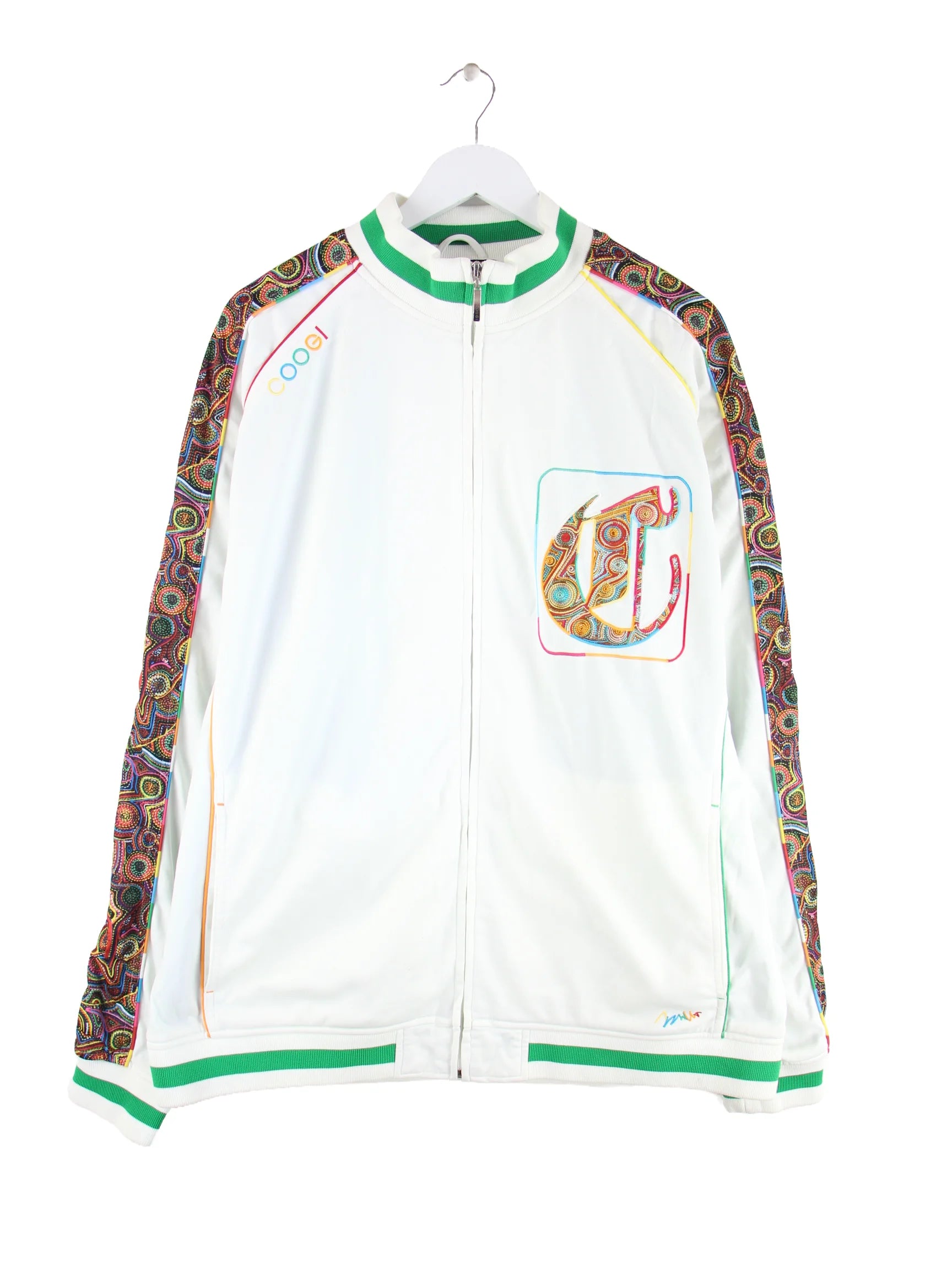 Weiße Trainingsjacke der Marke Coogi aus Anfang der 2000'er in Größe 3XL. Sie ist aus Synthetik hergestellt und in gutem Zustand auf Lager.