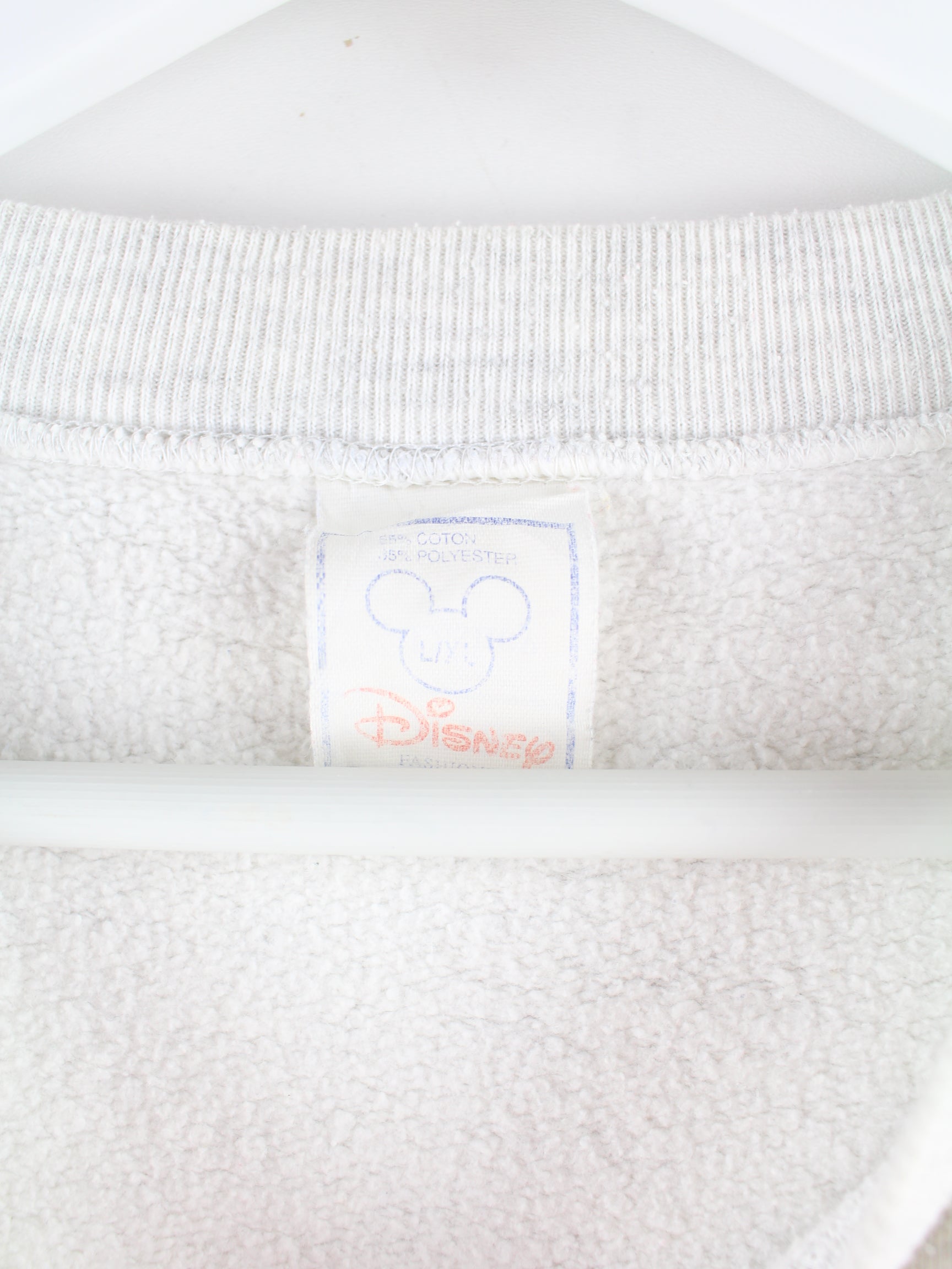 Grauer Sweater vom Label Disney aus den 80'ern in Größe L. Er ist aus einer Baumwollmischung produziert und in gutem Zustand im Angebot. Mit seltenem Mickey Print.