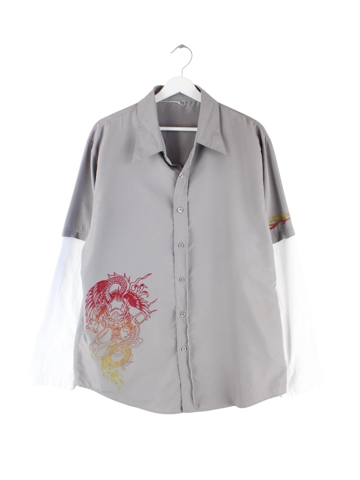 Freizeit Hemd des Labels Fishbone in Größe XL aus Anfang der 2000'er. Es ist aus Baumwolle produziert und in Grau im Bestand. Mit tollem Dragon Print.