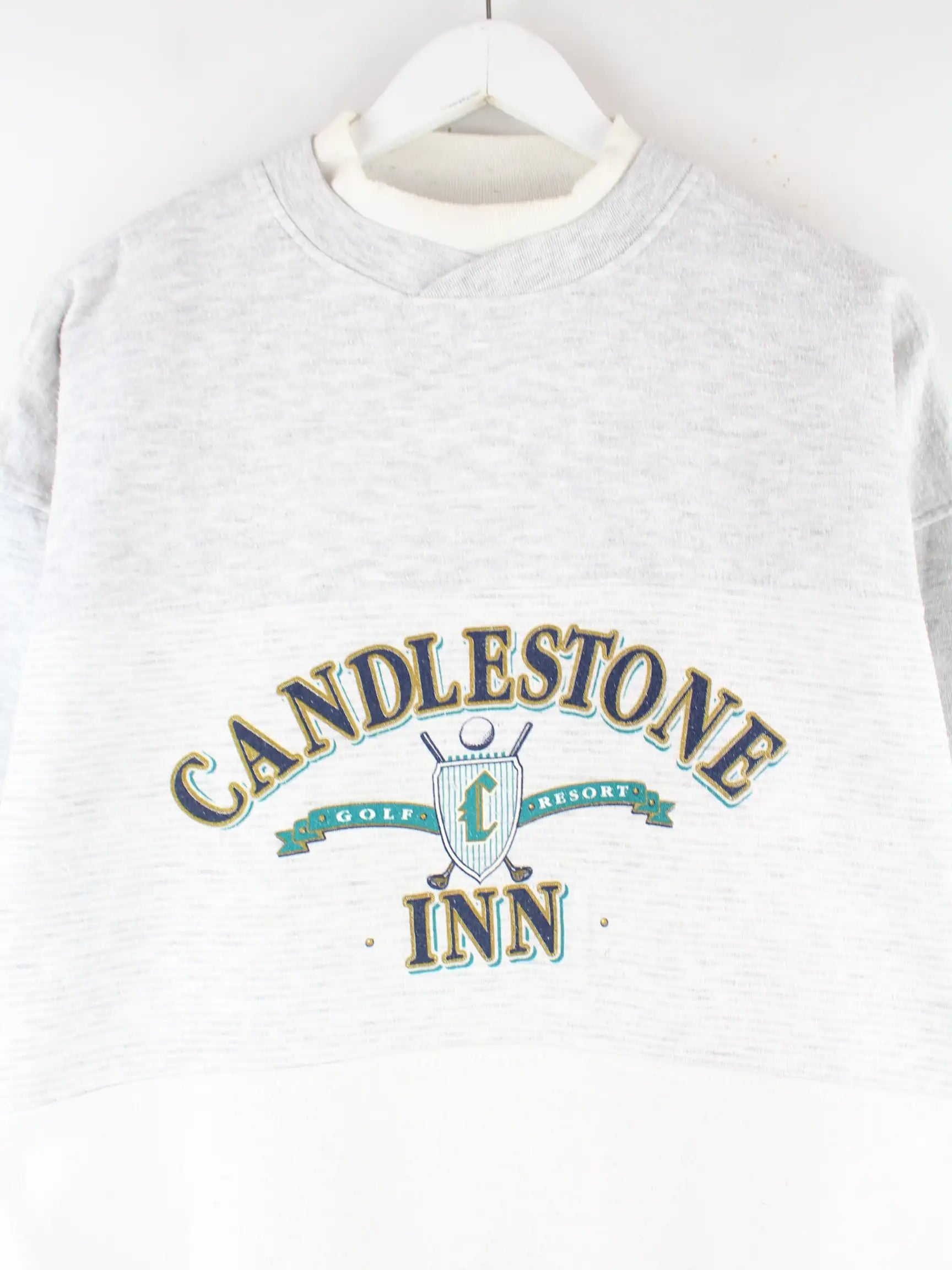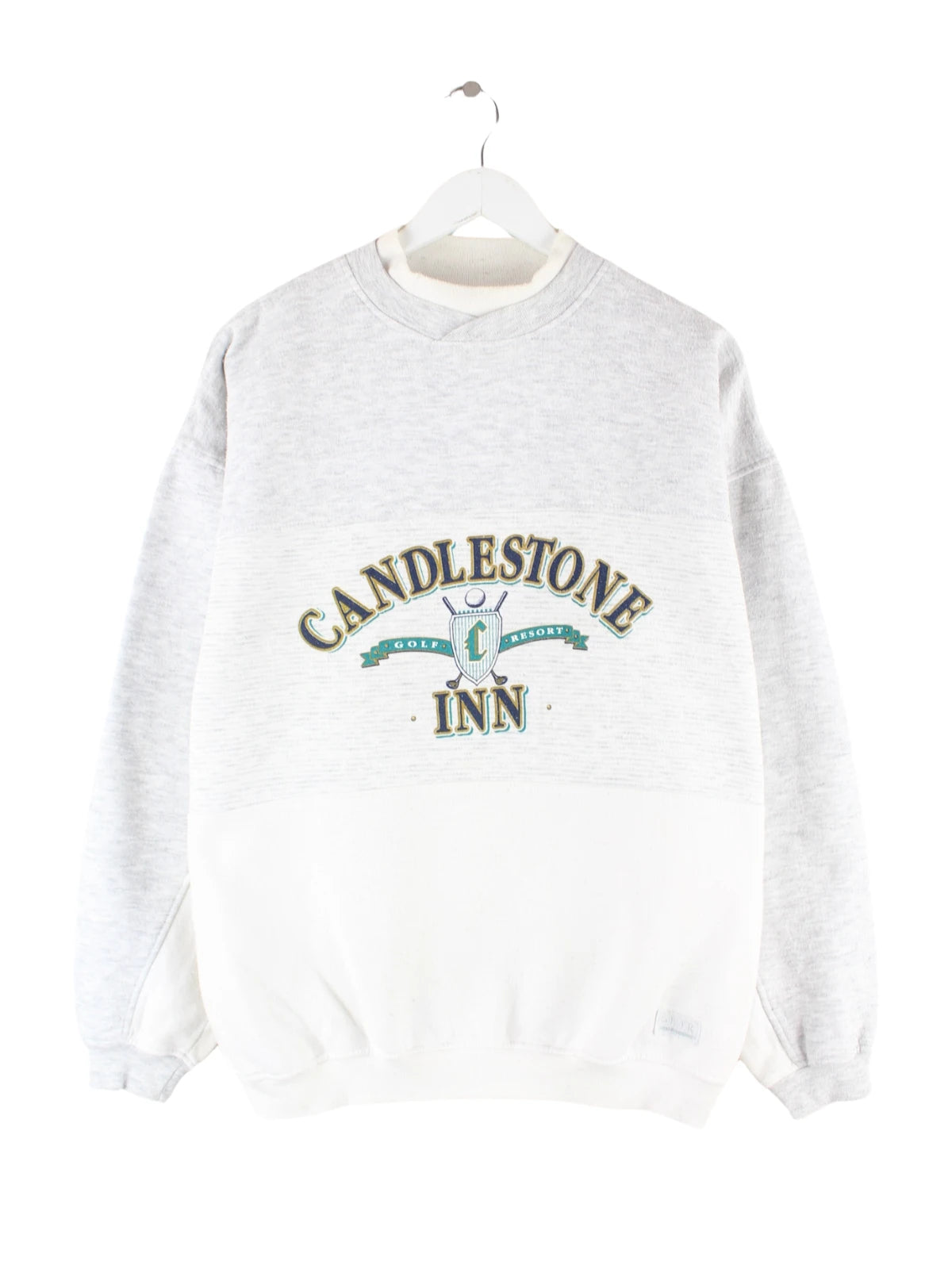 Grauer Sweater vom Brand Gear for Sports aus den 90'ern in Größe M. Er ist aus einer Baumwollmischung produziert und in gutem Zustand zu bekommen. Mit seltenem Candlestone Print.