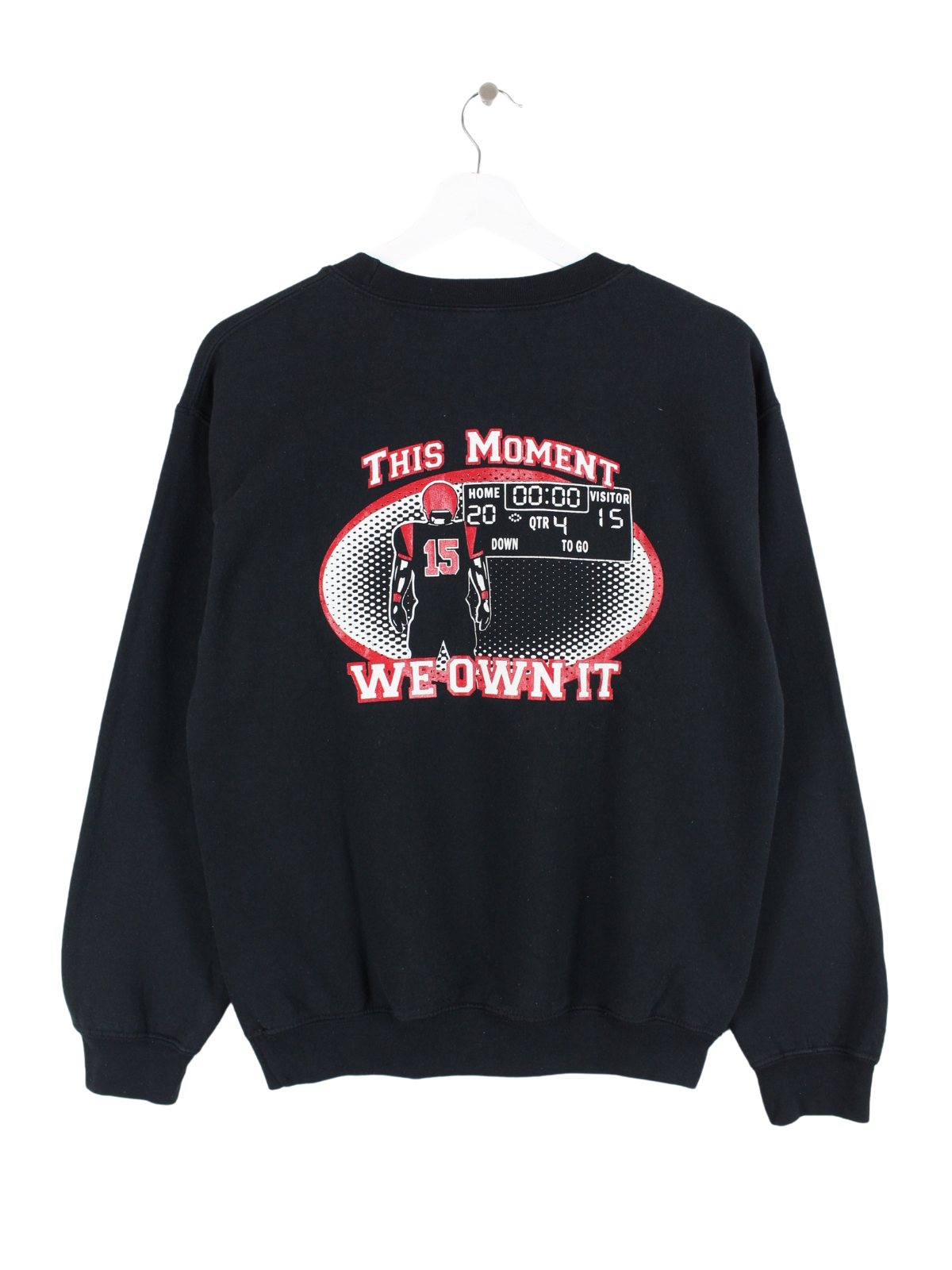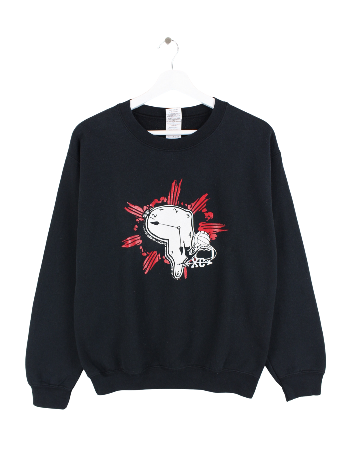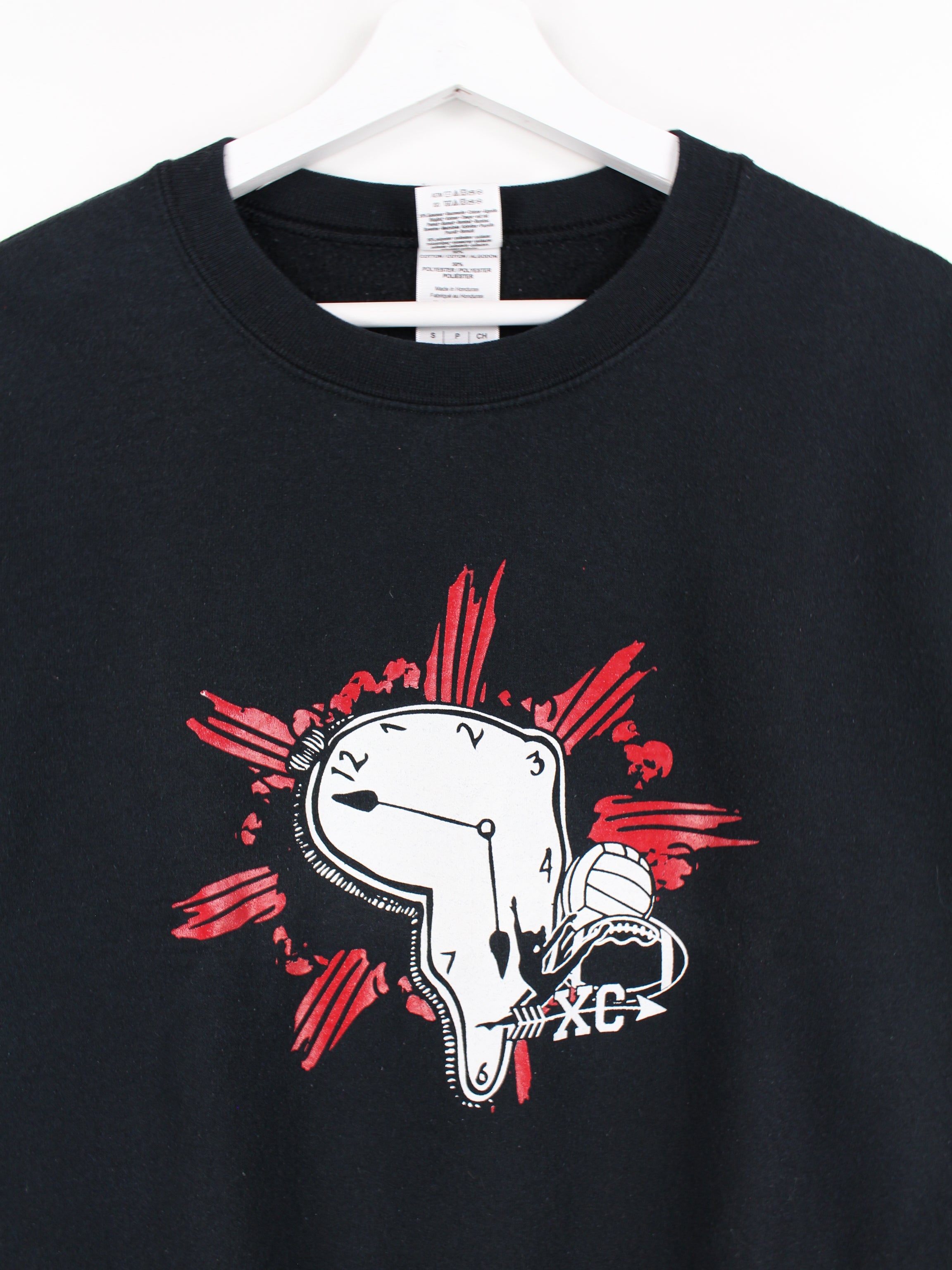 Pull Gildan noir avec un grand imprimé sur le devant et dans le dos.