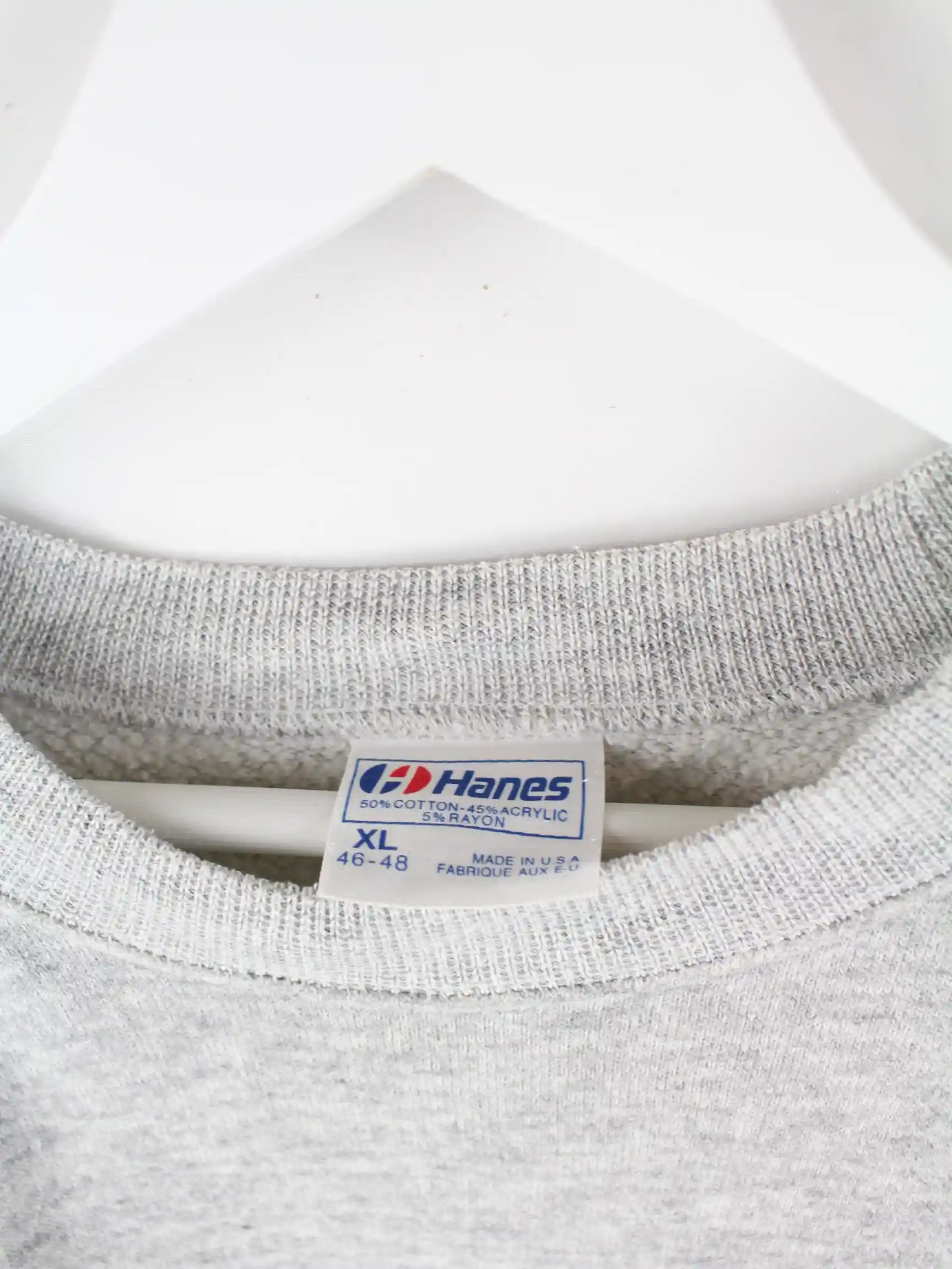 Sweater aus dem Hause Hanes in Größe XL aus den 90'ern. Er ist aus einer Baumwollmischung hergestellt und in Grau im Angebot. Mit chiquem Mallard Print.