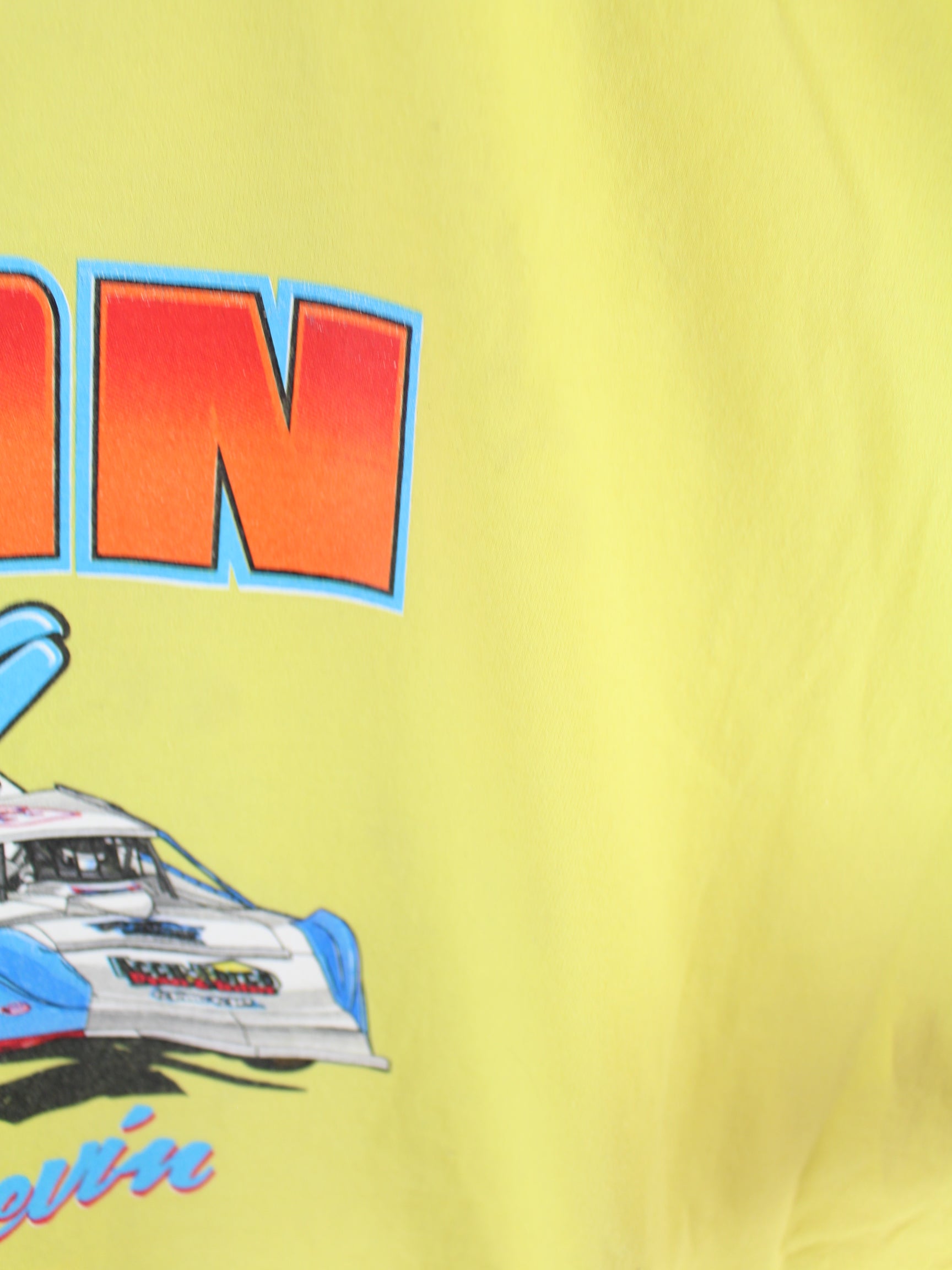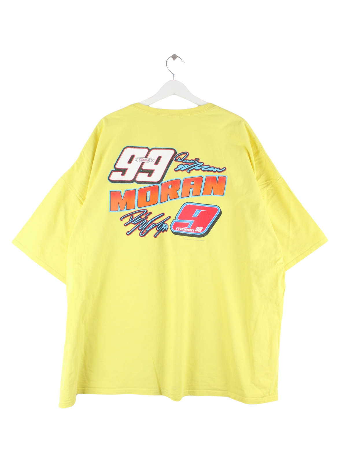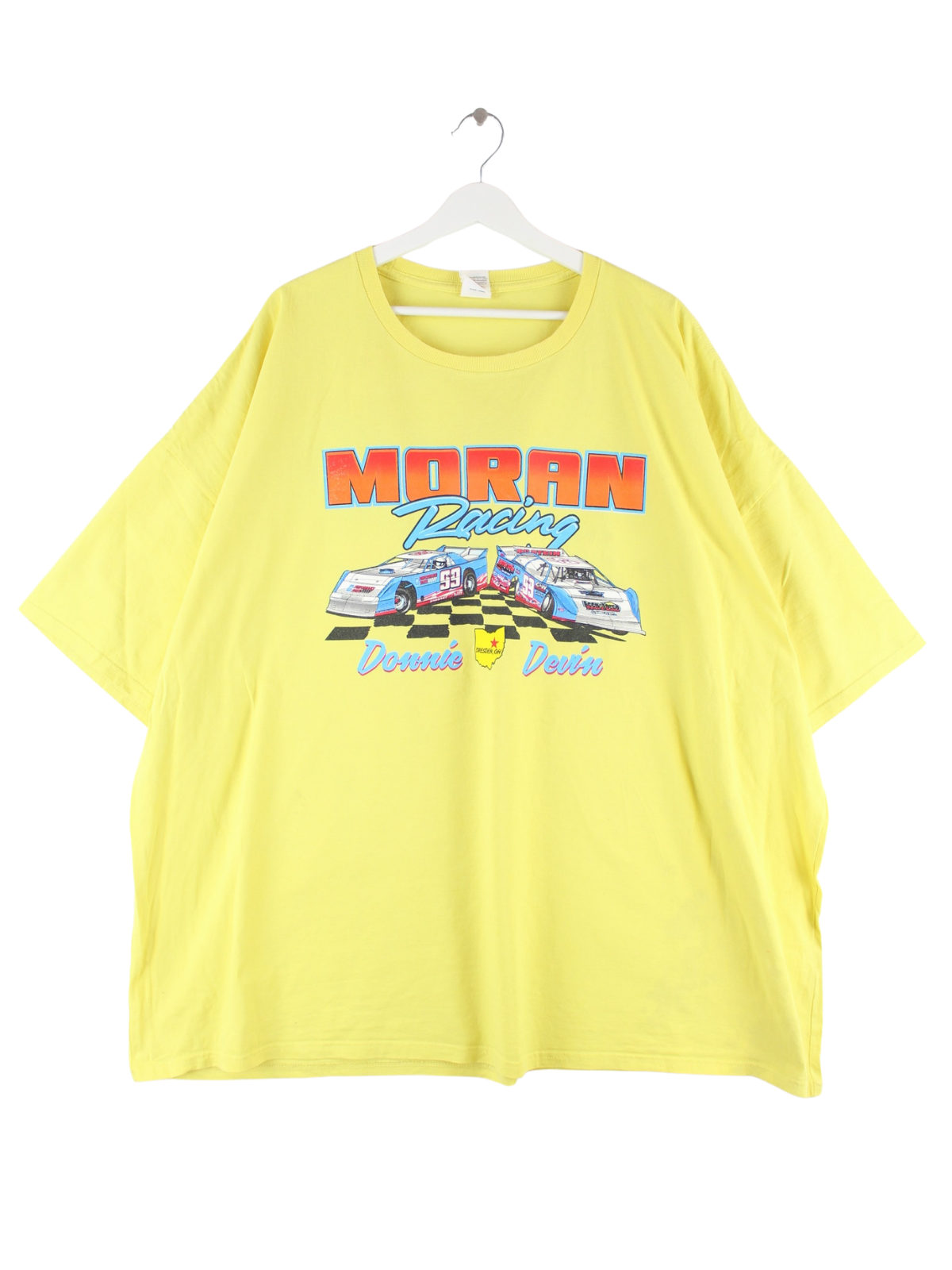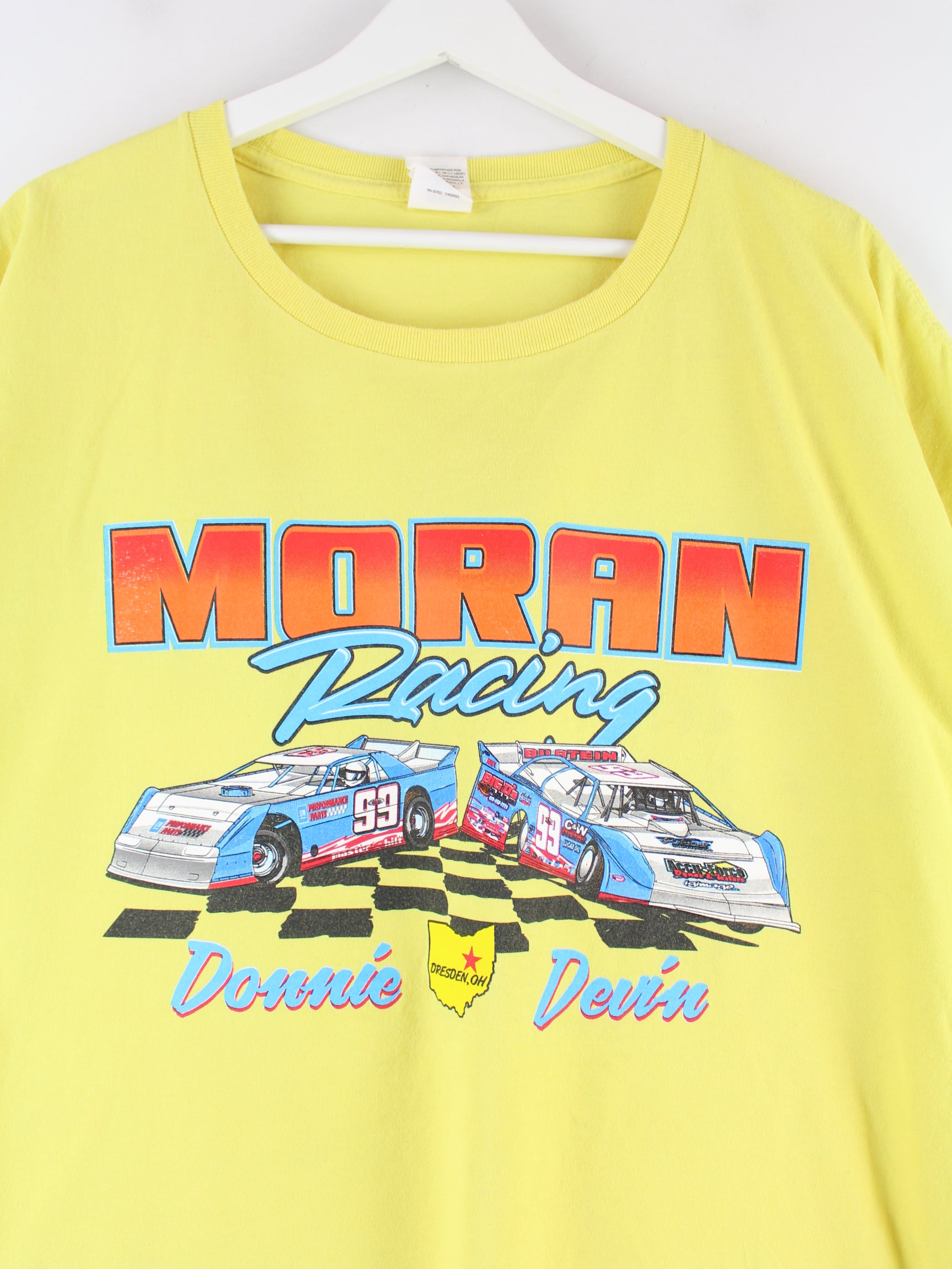 T-Shirt von Hanes in Größe 5XL. Es ist aus Baumwolle produziert und in Gelb zu bekommen. Mit seltenem Racing Print.