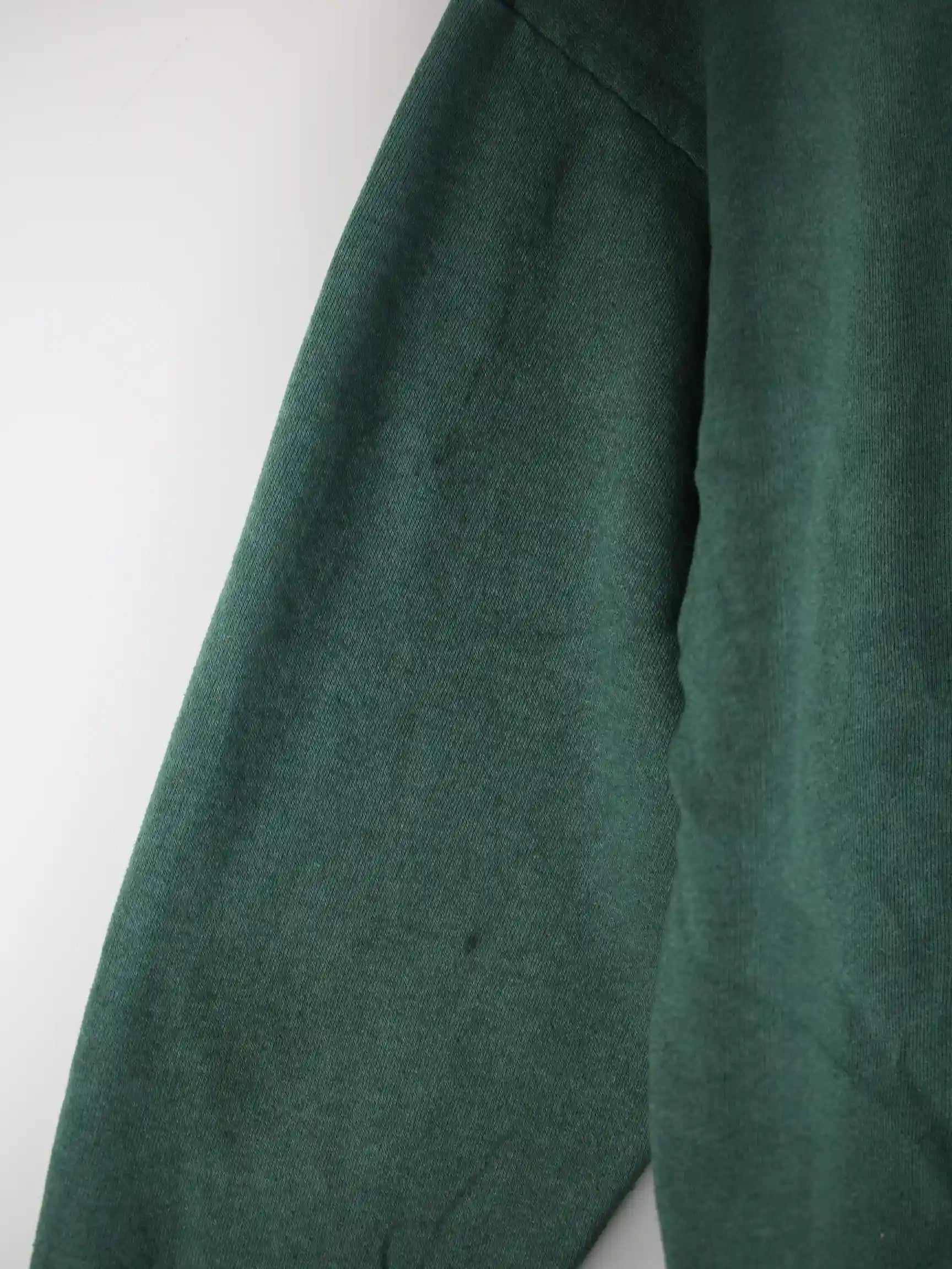 Sweater von Jerzees in Größe XL aus den 90'ern. Er ist aus einer Baumwollmischung hergestellt und in Grün bei uns zu bekommen. Mit schickem Funny Print.