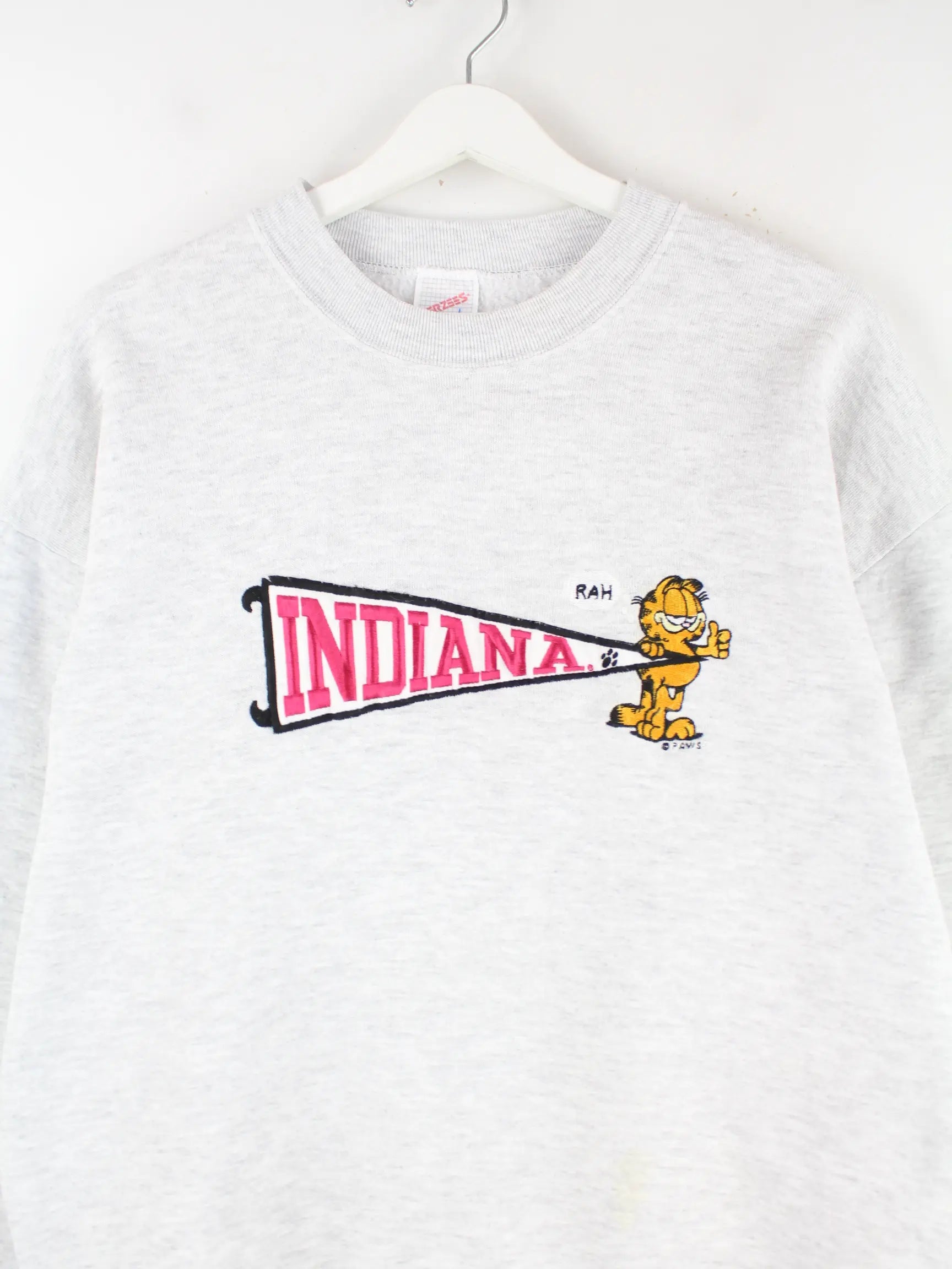 Jerzees 90s Vintage Garfield Indiana Embroidered Sweater Grau L