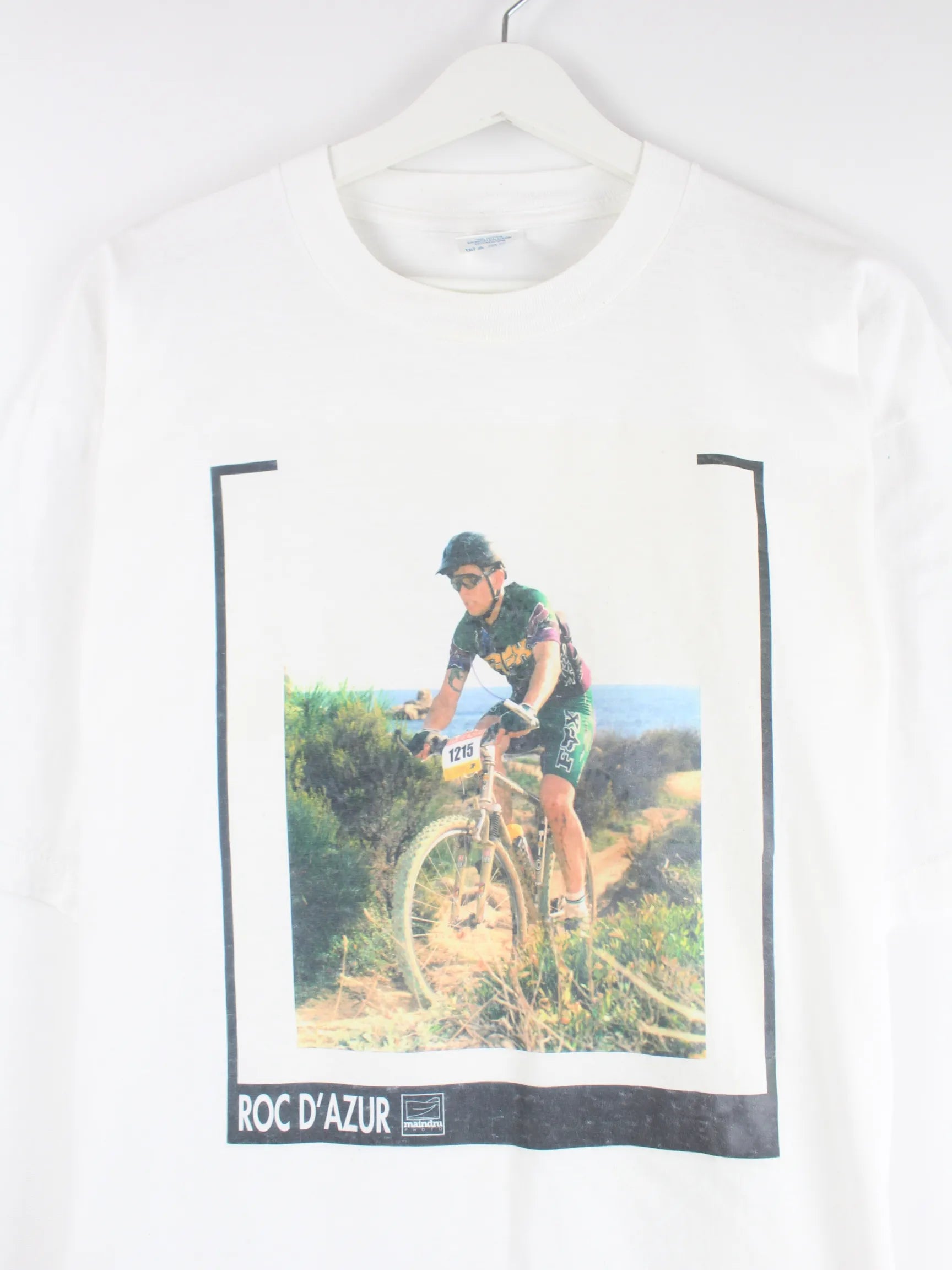 Jerzees 90s Vintage Mountain Bike Print T-Shirt Weiß XL
