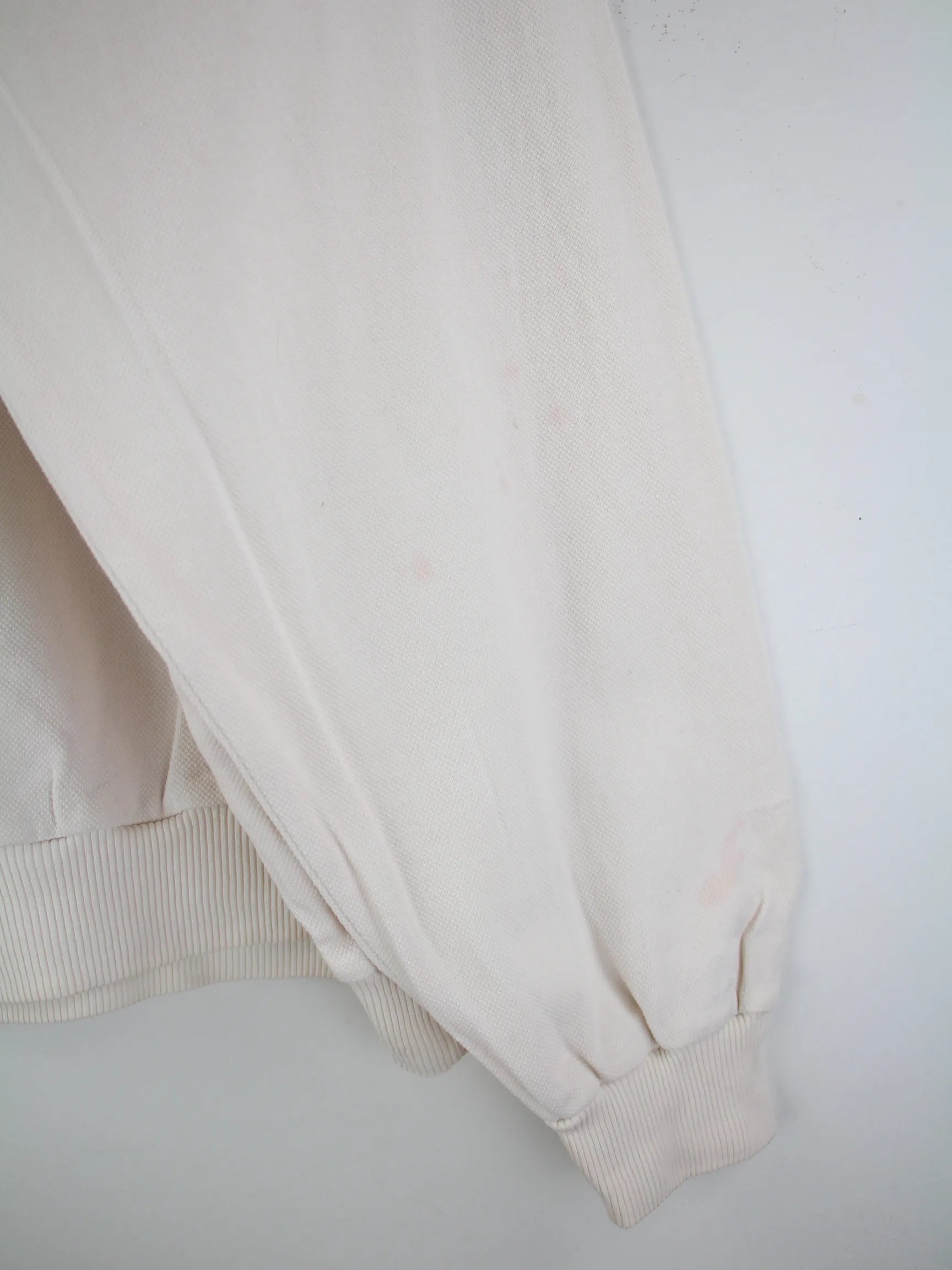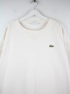 Sweater der Marke Lacoste in Größe XL aus den 90'ern. Er ist aus einer Baumwollmischung hergestellt und in Weiß in Stock.