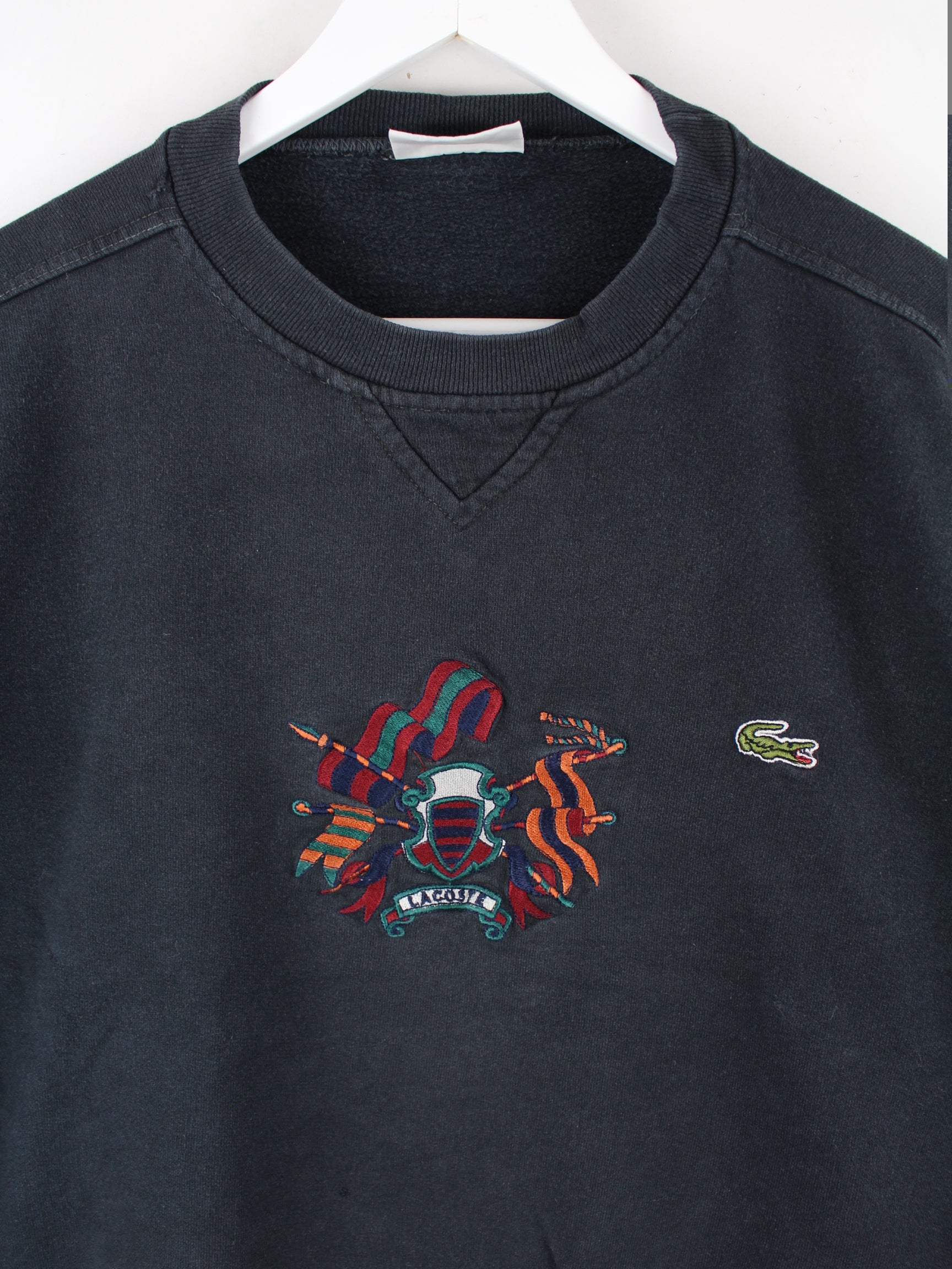 Lacoste Damen 90s Vintage Embroidered Sweater Schwarz L