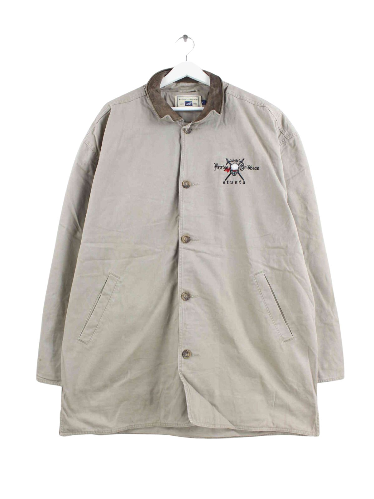 Beige Lee 90s Vintage Pirates of the Caribbean Stunts Chore Barn Jacke in Größe XL.