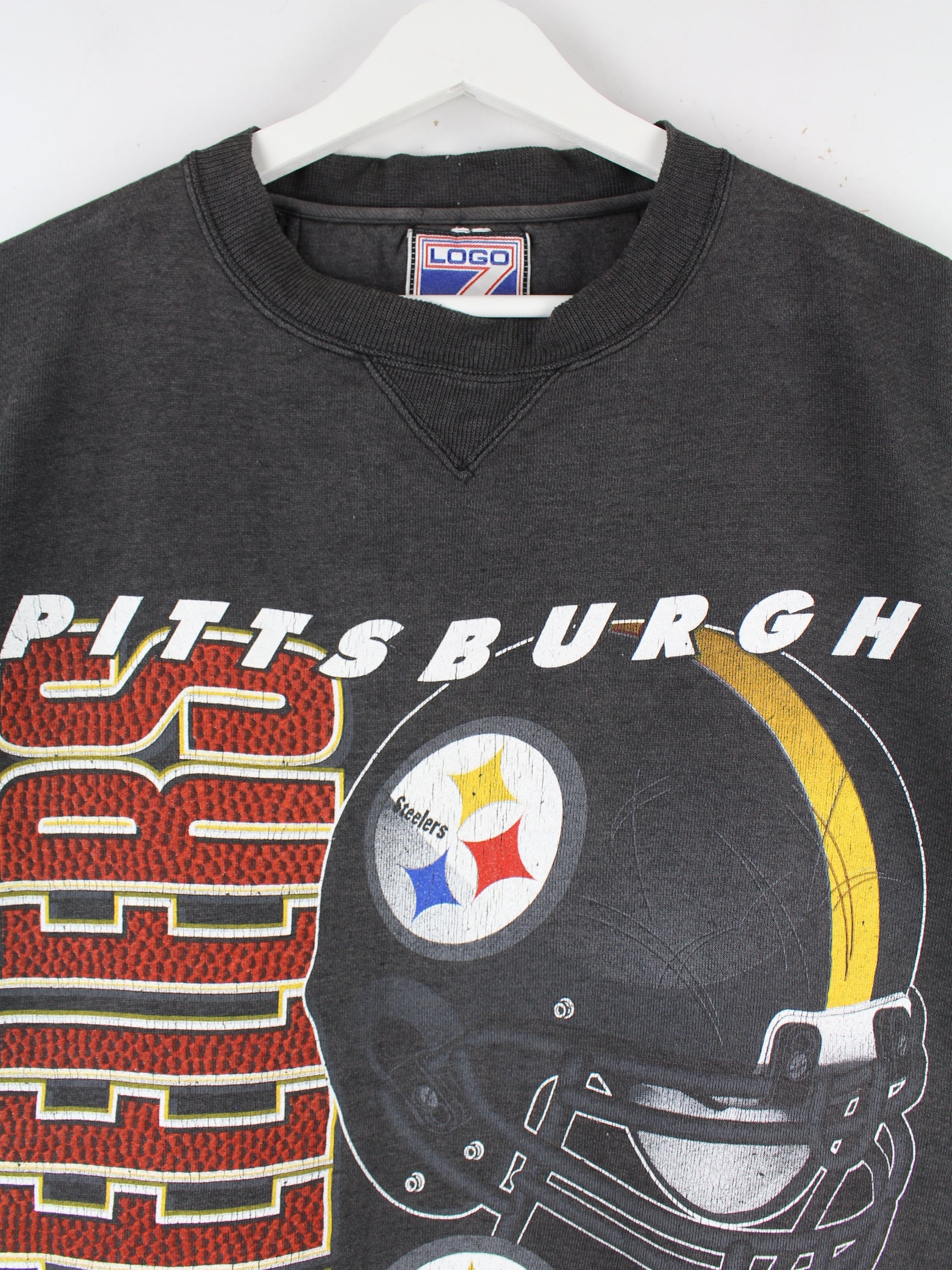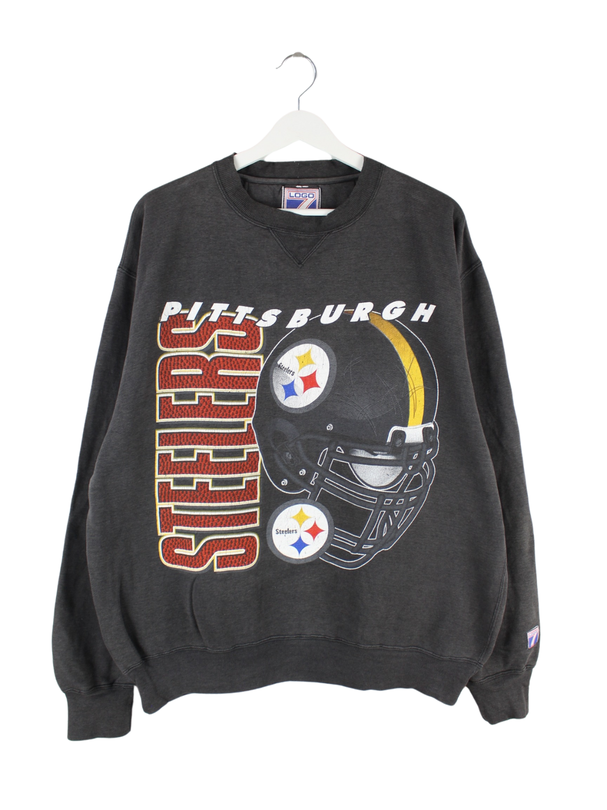 Logo 7 90s Vintage NFL Pittsburgh Steelers Sweater Grau XL
