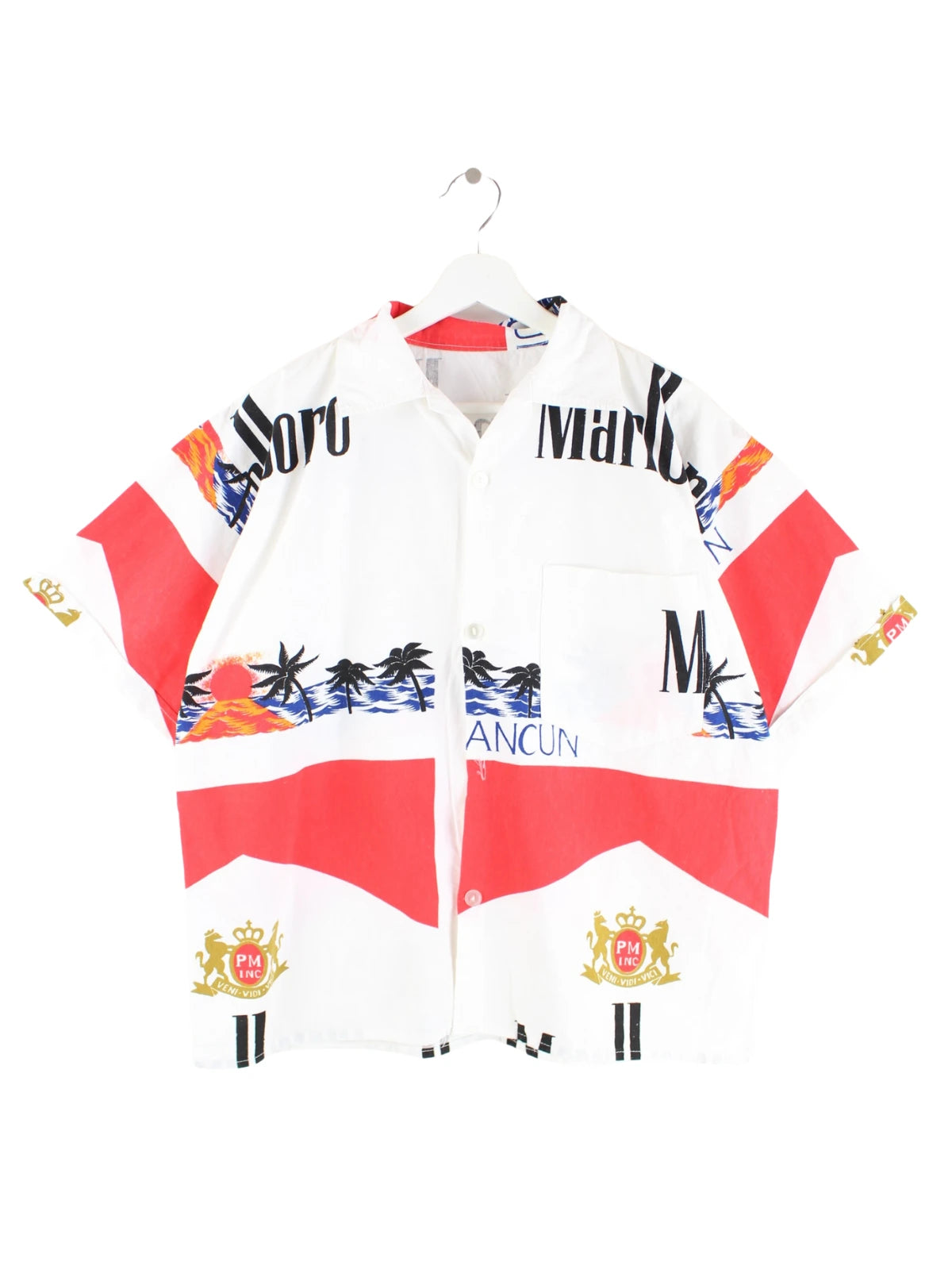 Marlboro 90s Vintage All Over Print Kurzarm Hemd Weiß M
