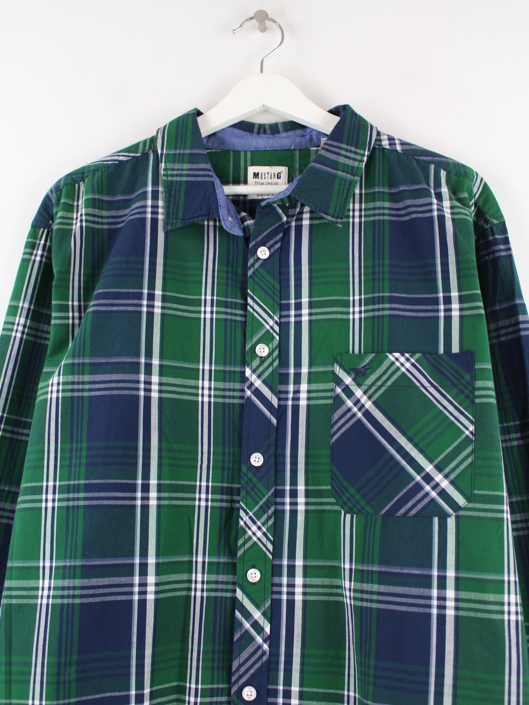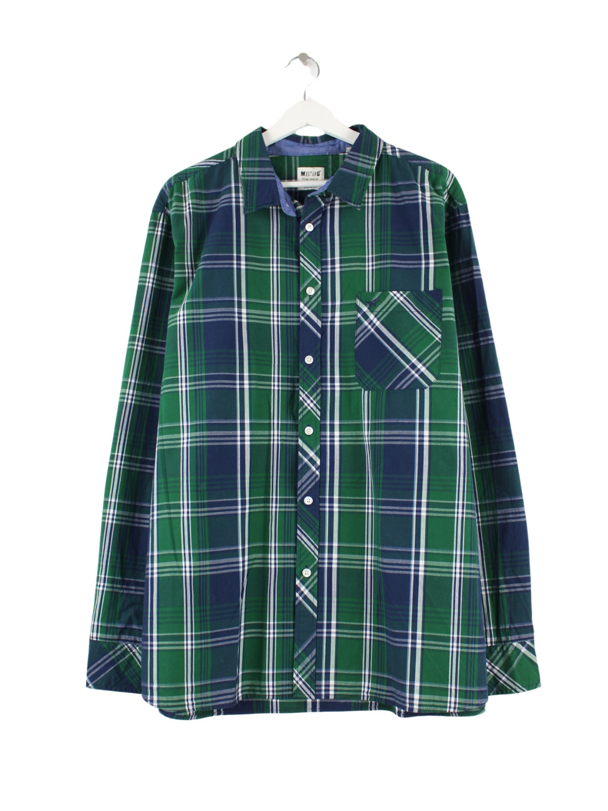 Freizeit Hemd der Brand Mustang in Größe XL. Es ist aus Baumwolle gefertigt und in Grün zu bekommen.