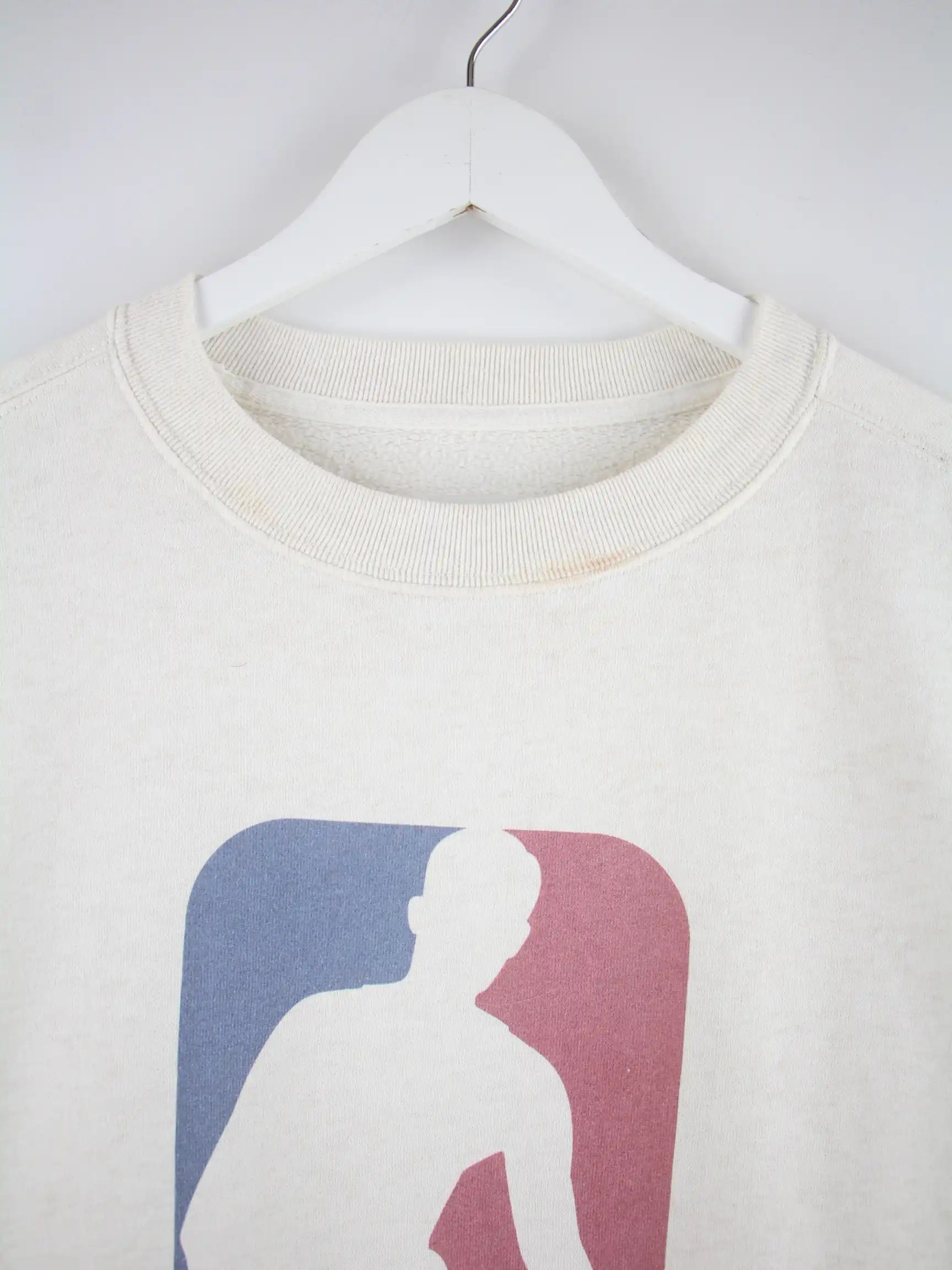 Sweater aus dem Hause NBA in Größe L. Er ist aus einer Baumwollmischung produziert und in Weiß vorrätig. Mit seltenem Logo Print.