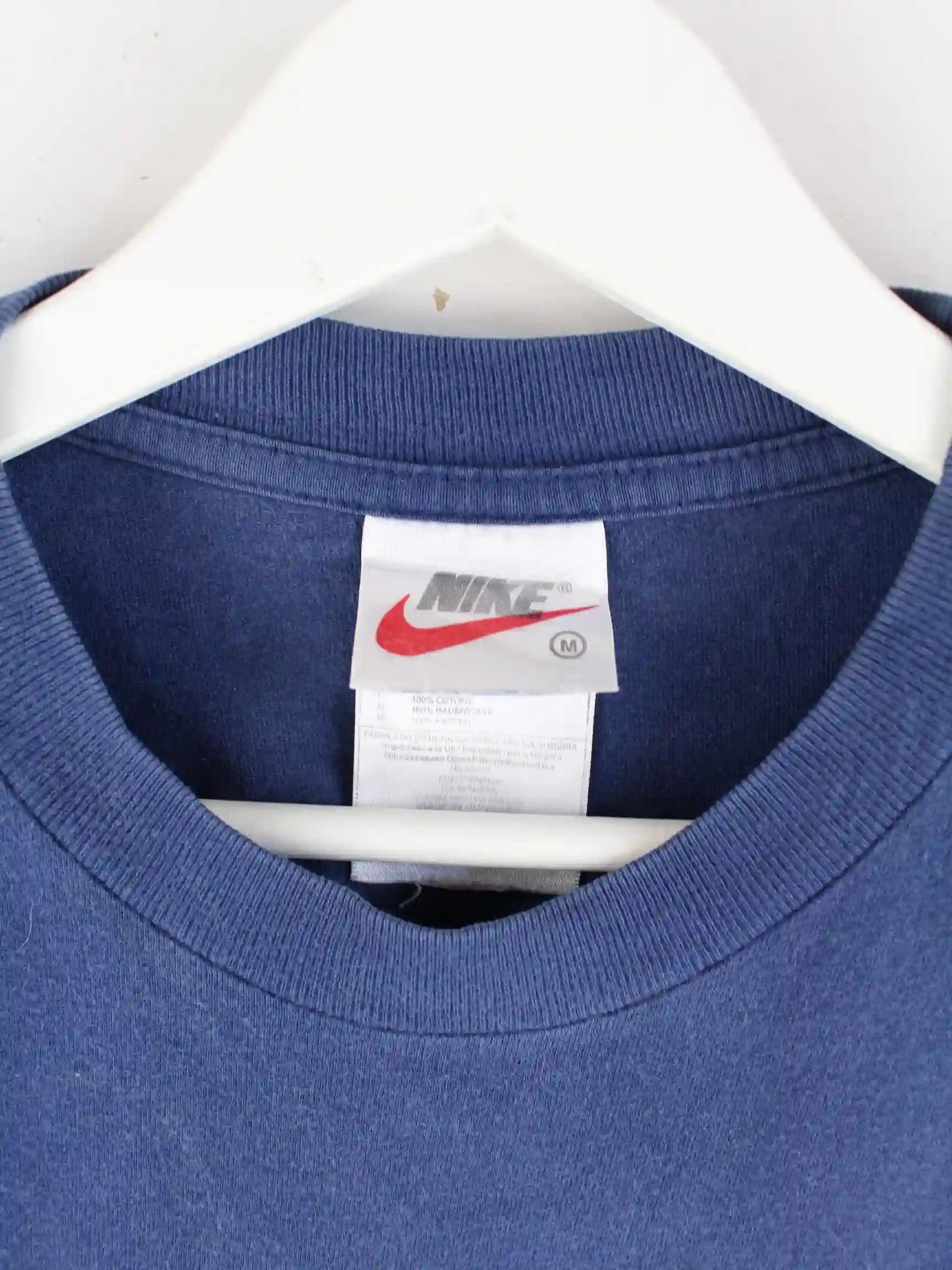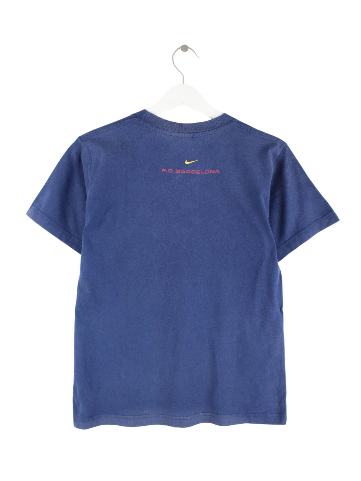 T-Shirt von Nike in Größe M aus den 90'ern. Es ist aus Baumwolle angefertigt und in Blau auf Lager. Mit seltenem Barcelona Print.