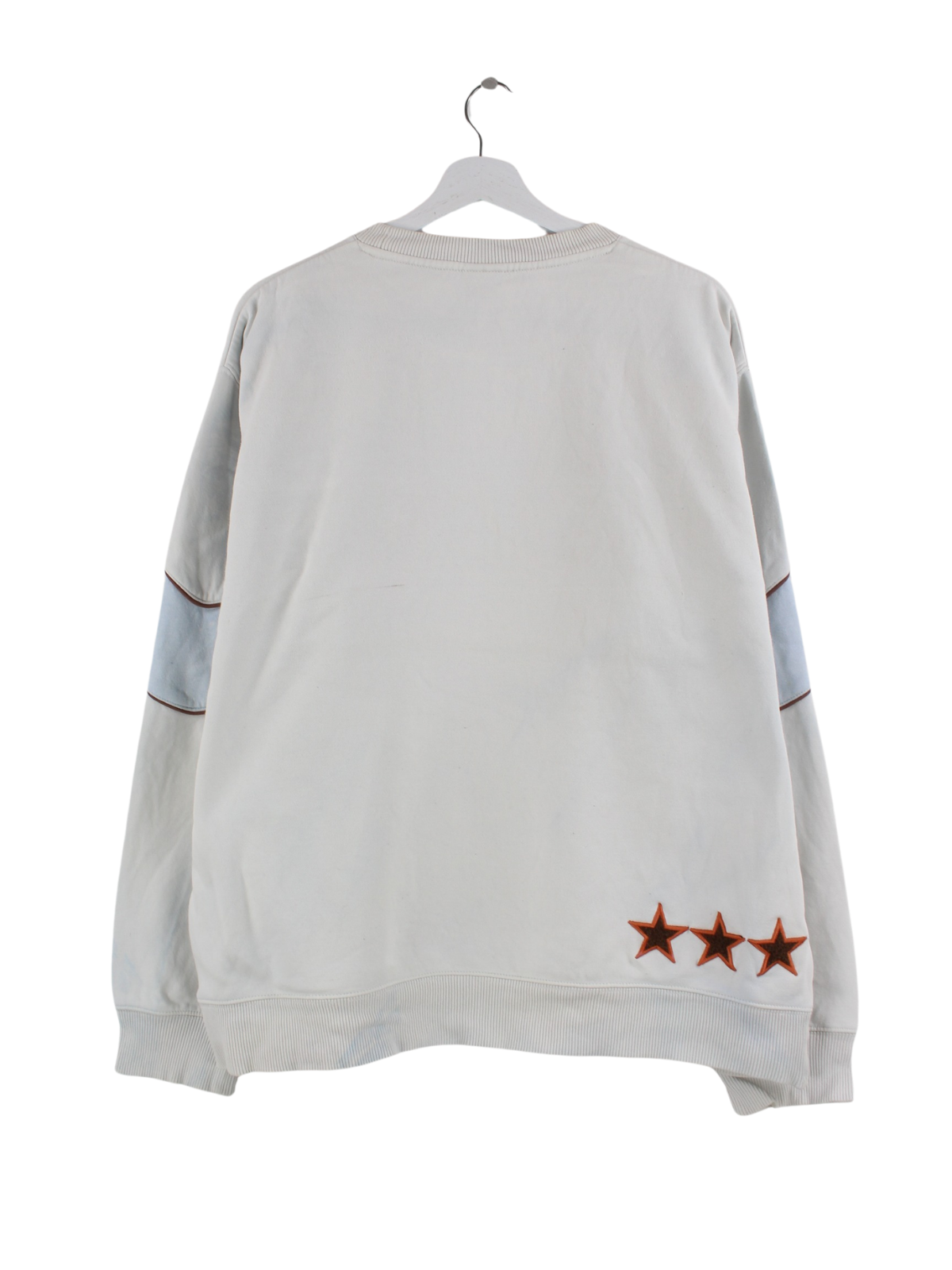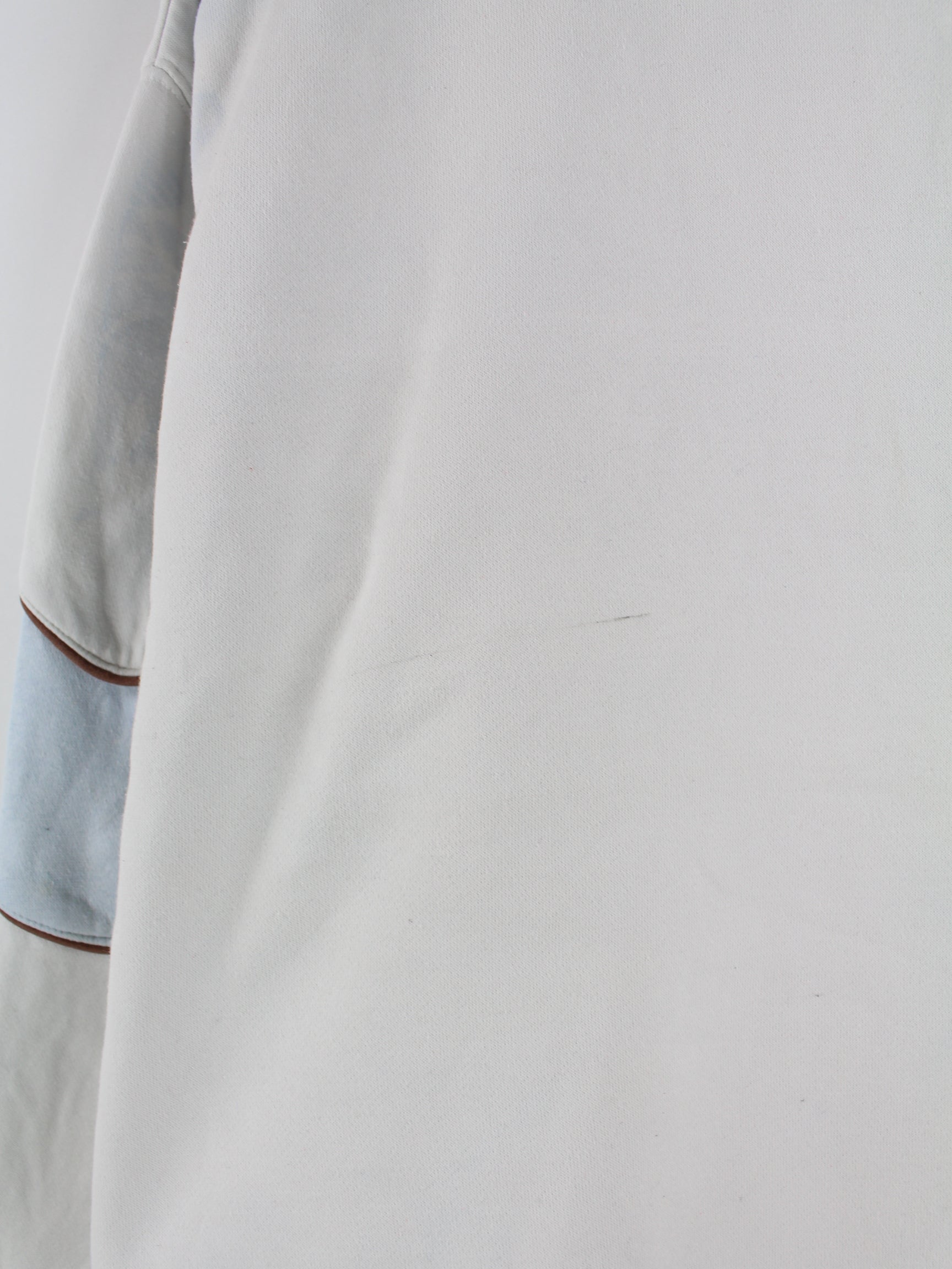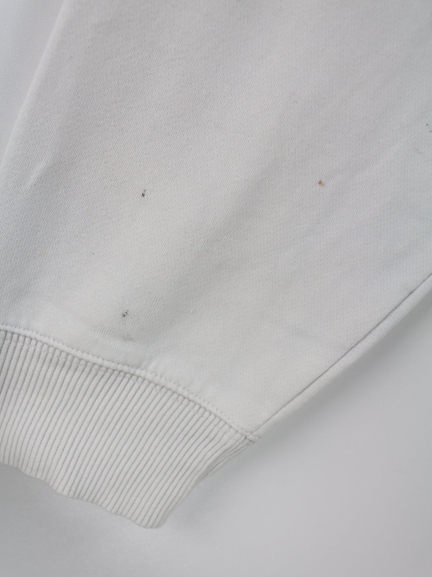 Weißer Sweater mit Stickereien vom Label Nike aus Anfang der 2000'er in Größe L. Er ist aus einer Baumwollmischung gefertigt. Den Zustand würden wir als 'In Ordnung' bezeichnen (vergl. Bilder).
