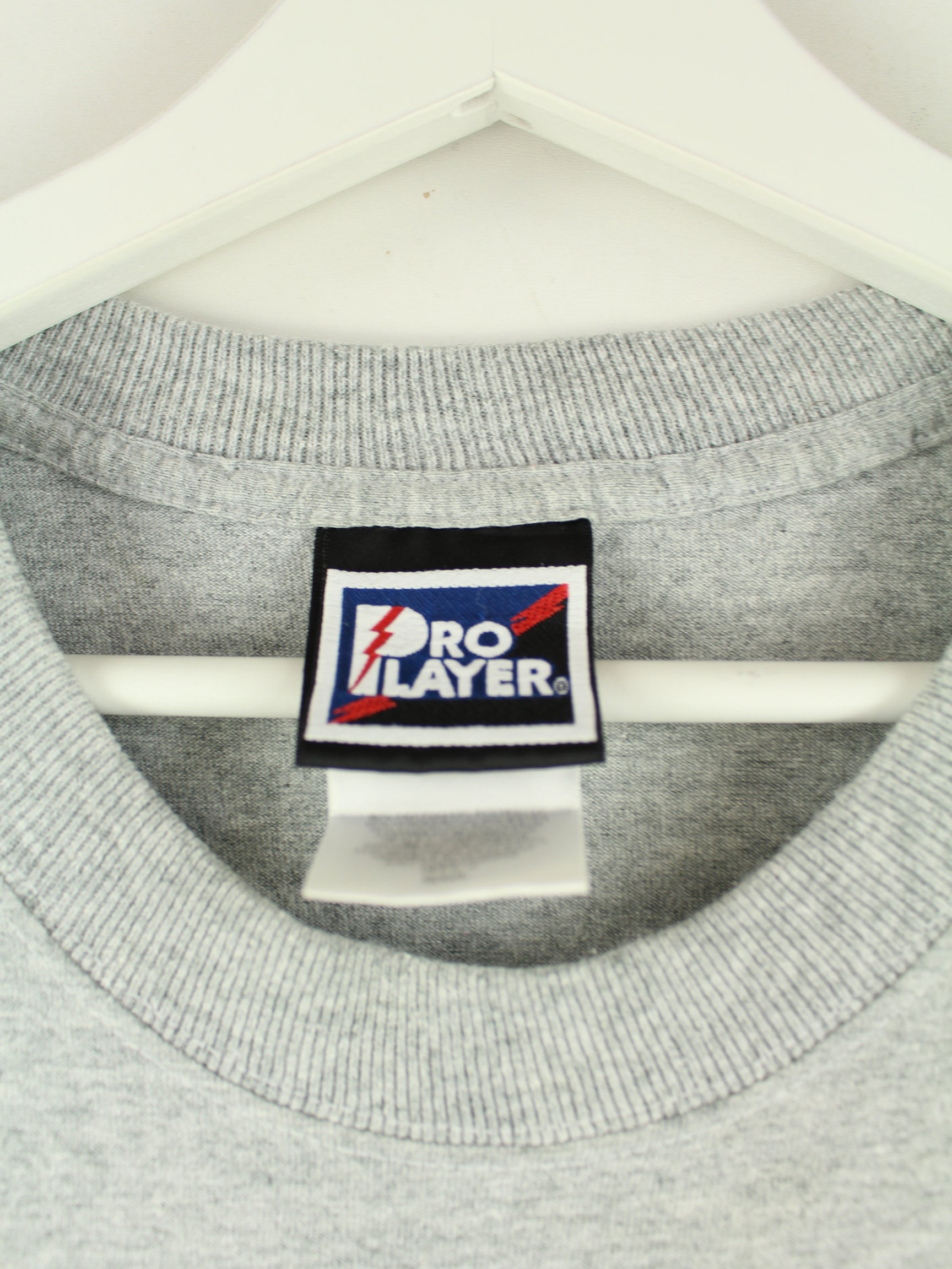 Graues T-Shirt der Marke Pro Player in Größe L. Es ist aus Baumwolle gefertigt und in sehr gutem Zustand bei uns vorrätig. Mit seltenem Browns Print.