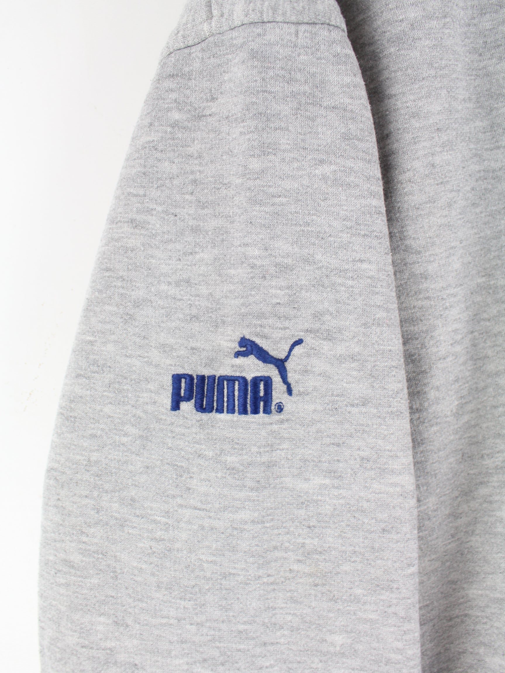 Sweater vom Brand Puma mit Stickereien und halbem Reißverschluß in Größe M. Er ist aus einer Baumwollmischung angefertigt und in Grau im Angebot.