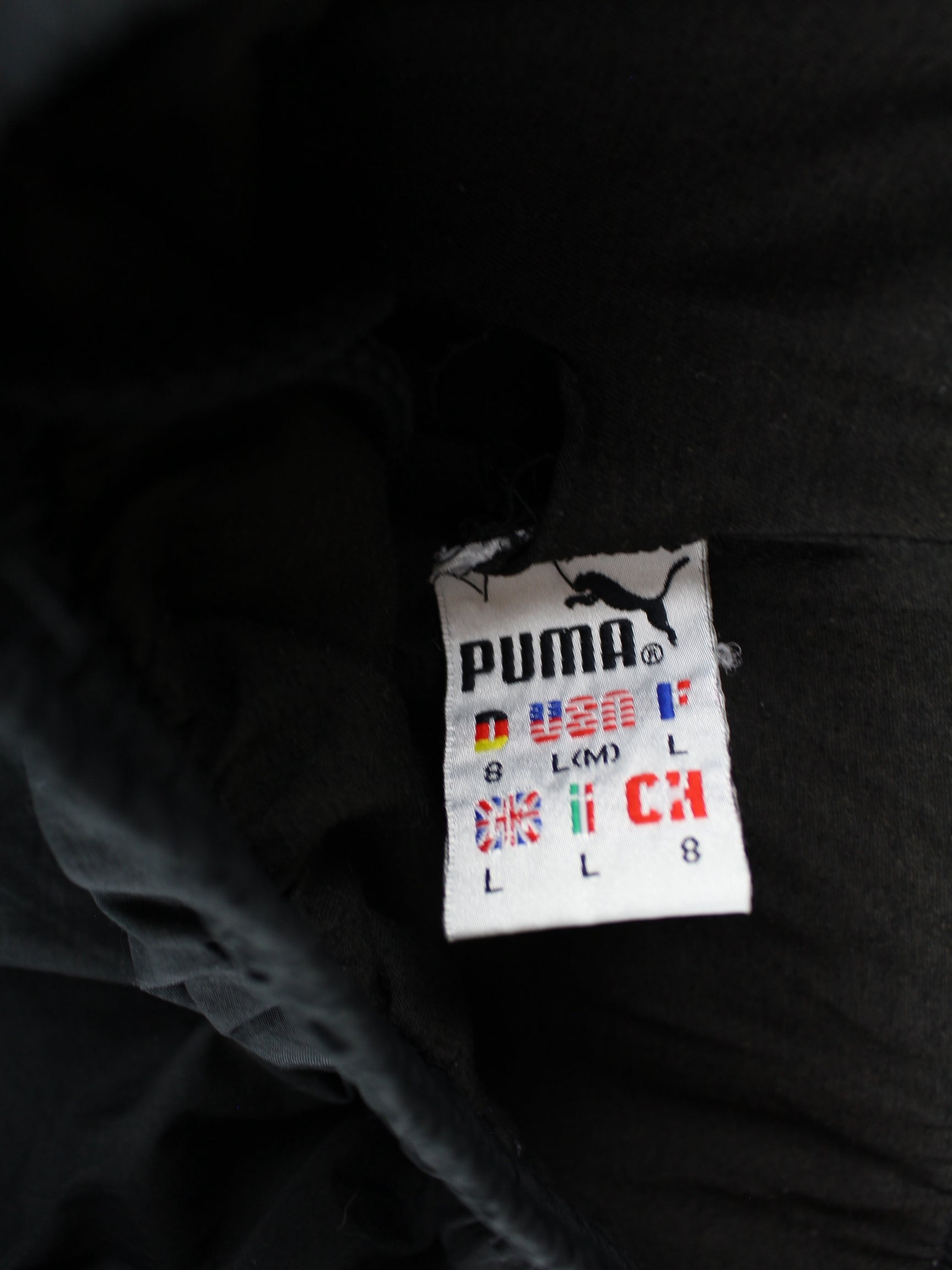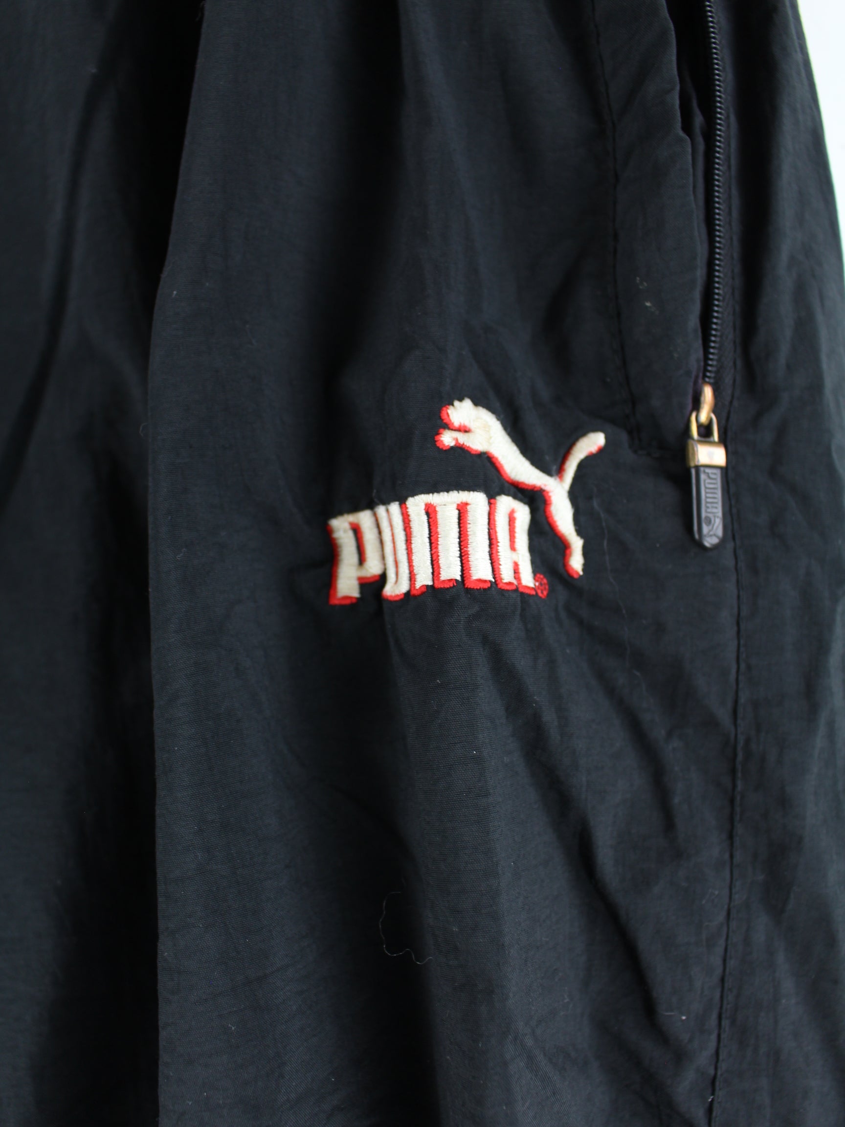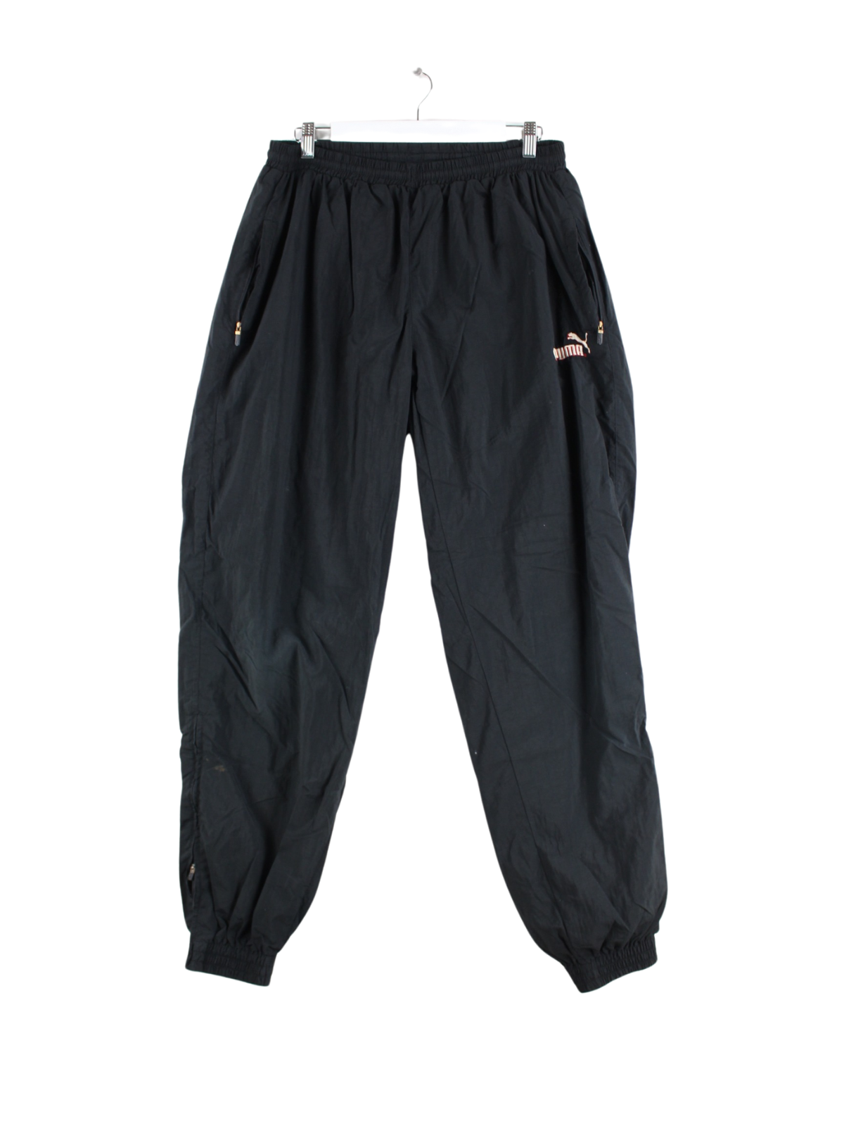 Track Pants vom Brand Puma in Größe L aus den 90'ern. Sie sind aus Synthetik hergestellt und in Schwarz zu bekommen.