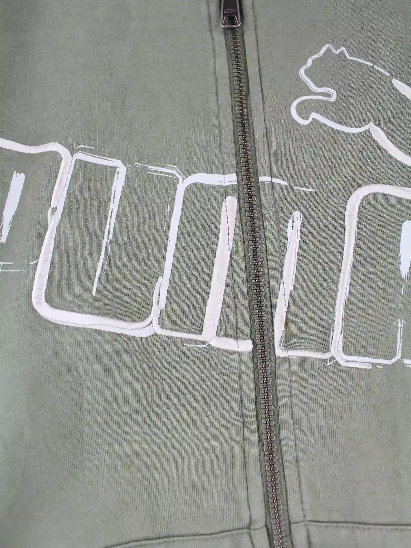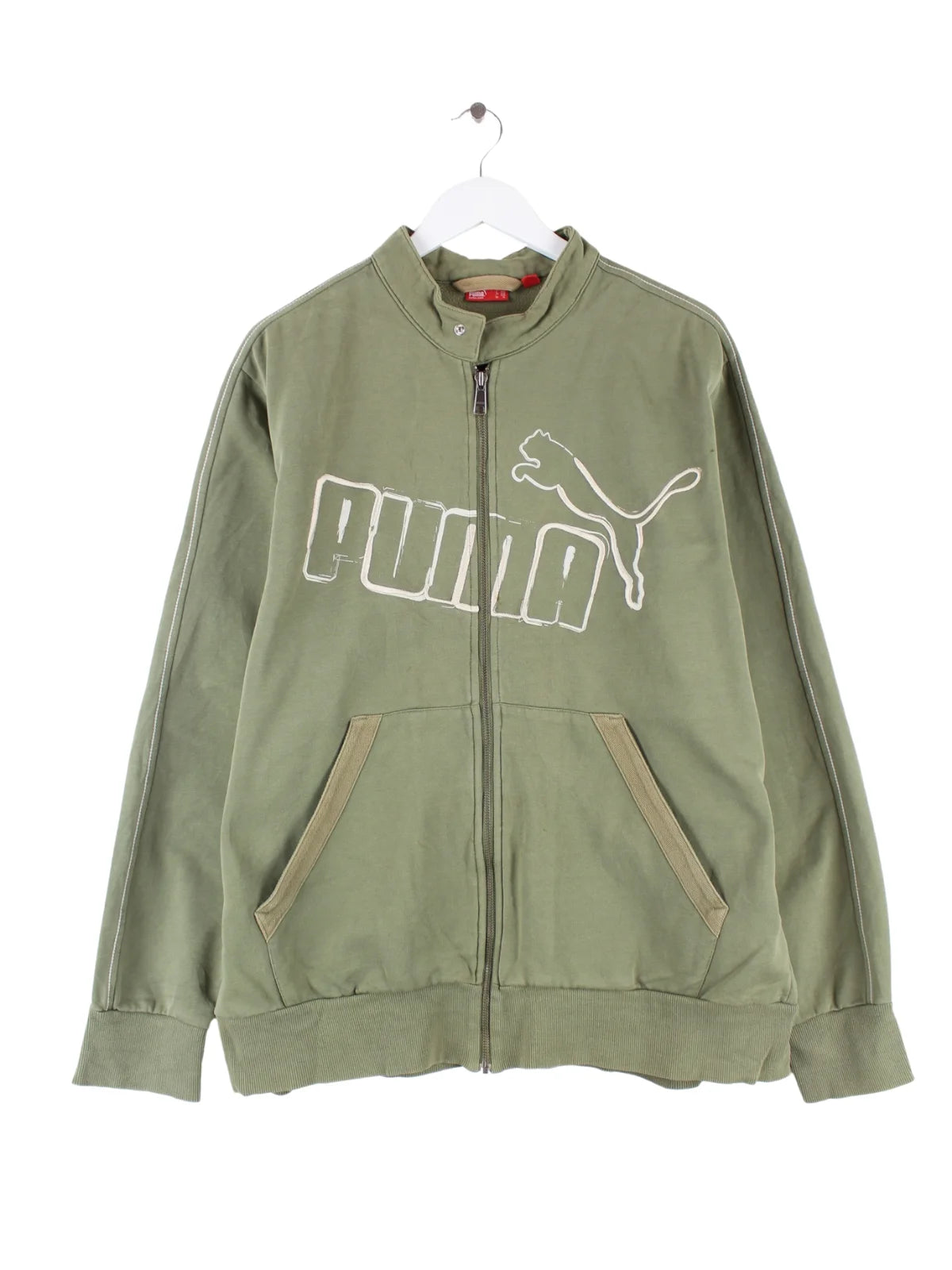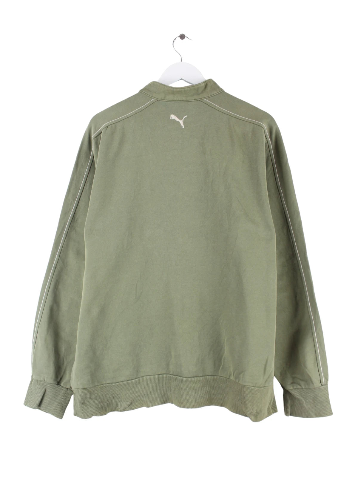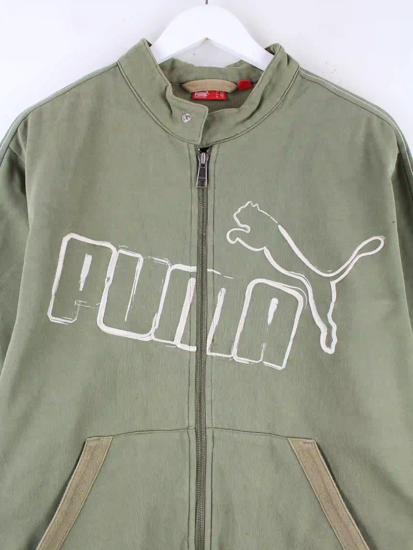 Sweatjacke der Brand Puma mit Stick in Größe XL. Sie ist aus einer Baumwollmischung gefertigt und in Grün bei uns vorrätig.