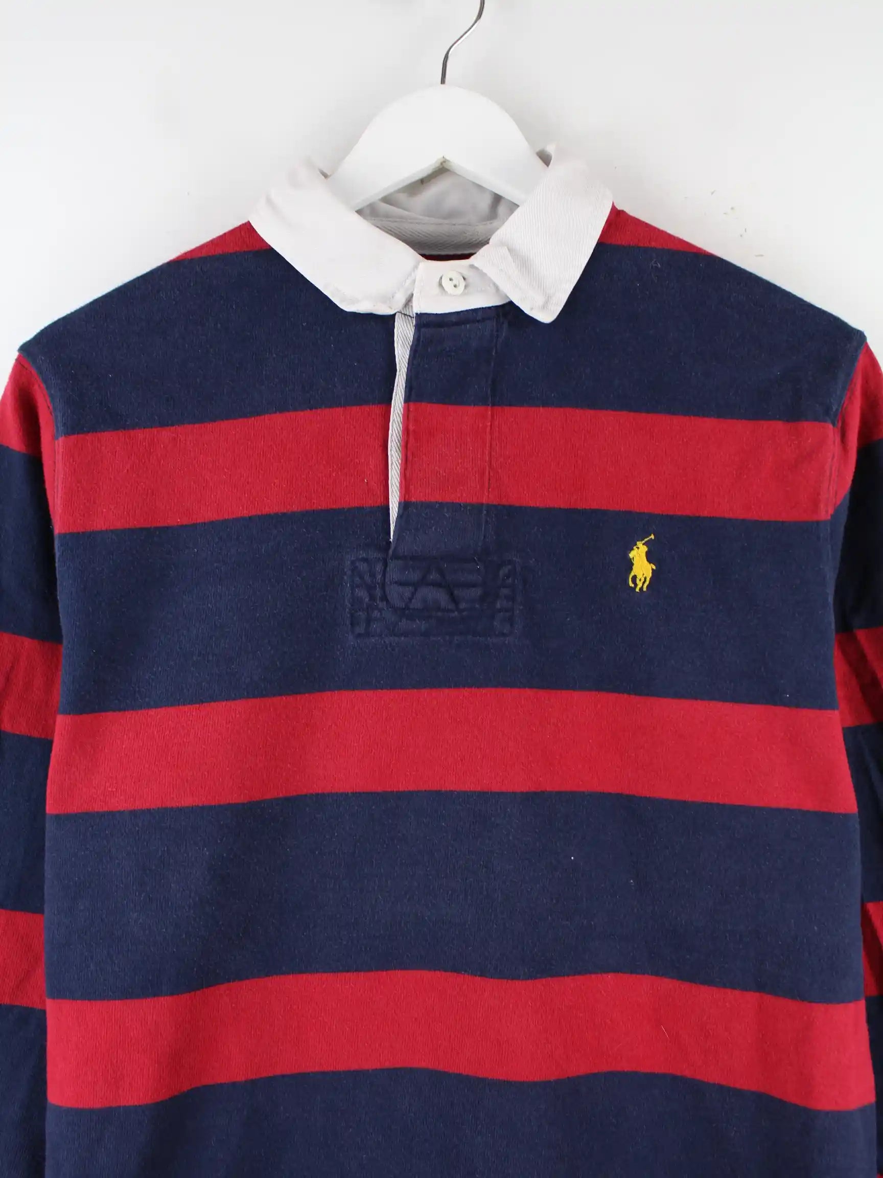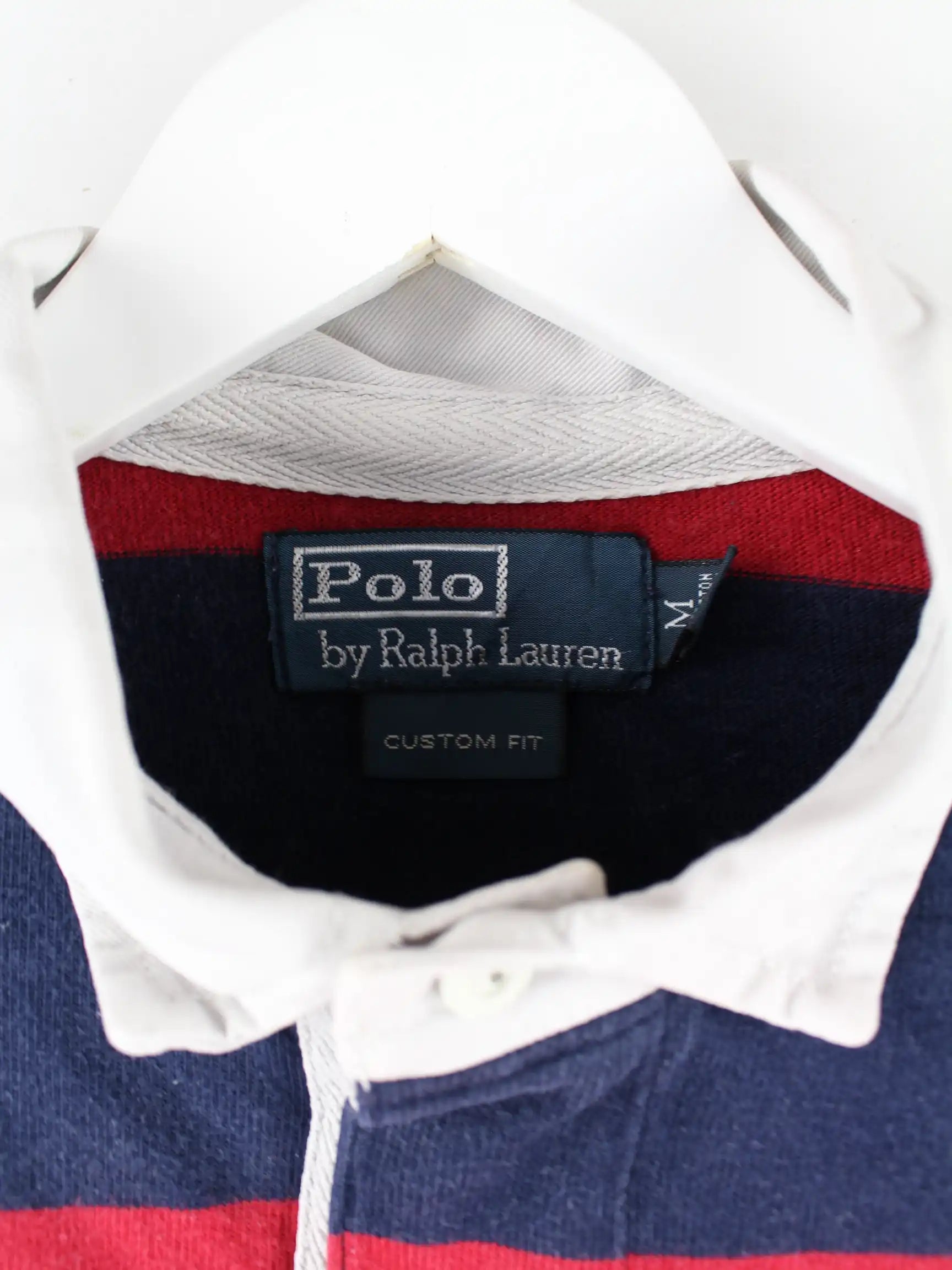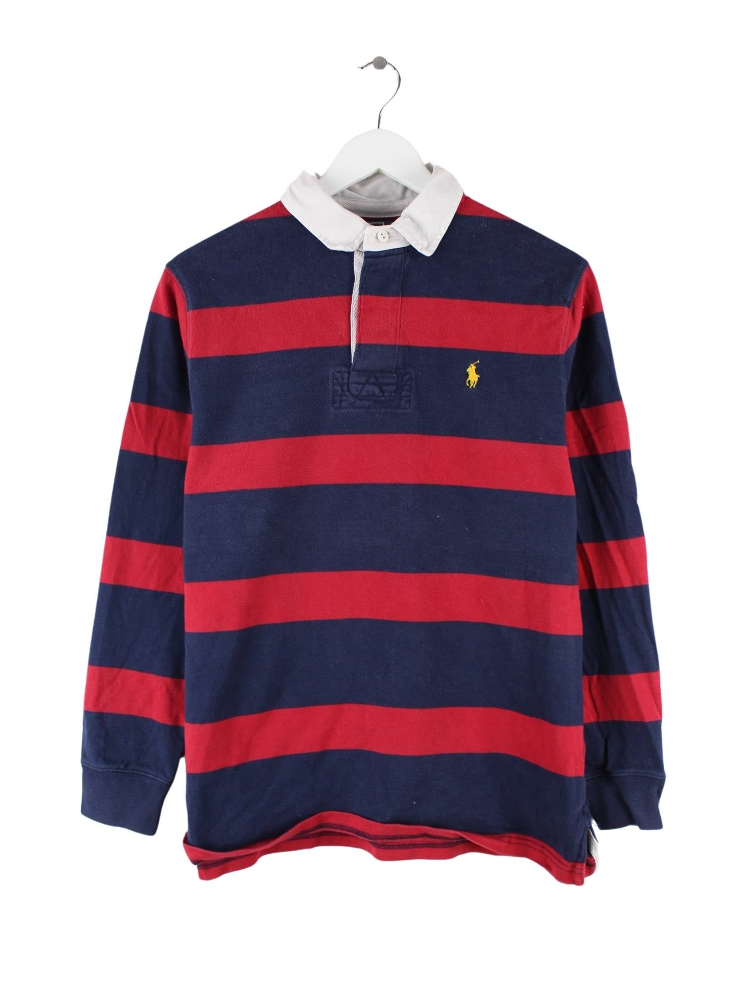 Ralph Lauren 90s Vintage Custom Fit Rugby Langarm Polo Blau/Rot M