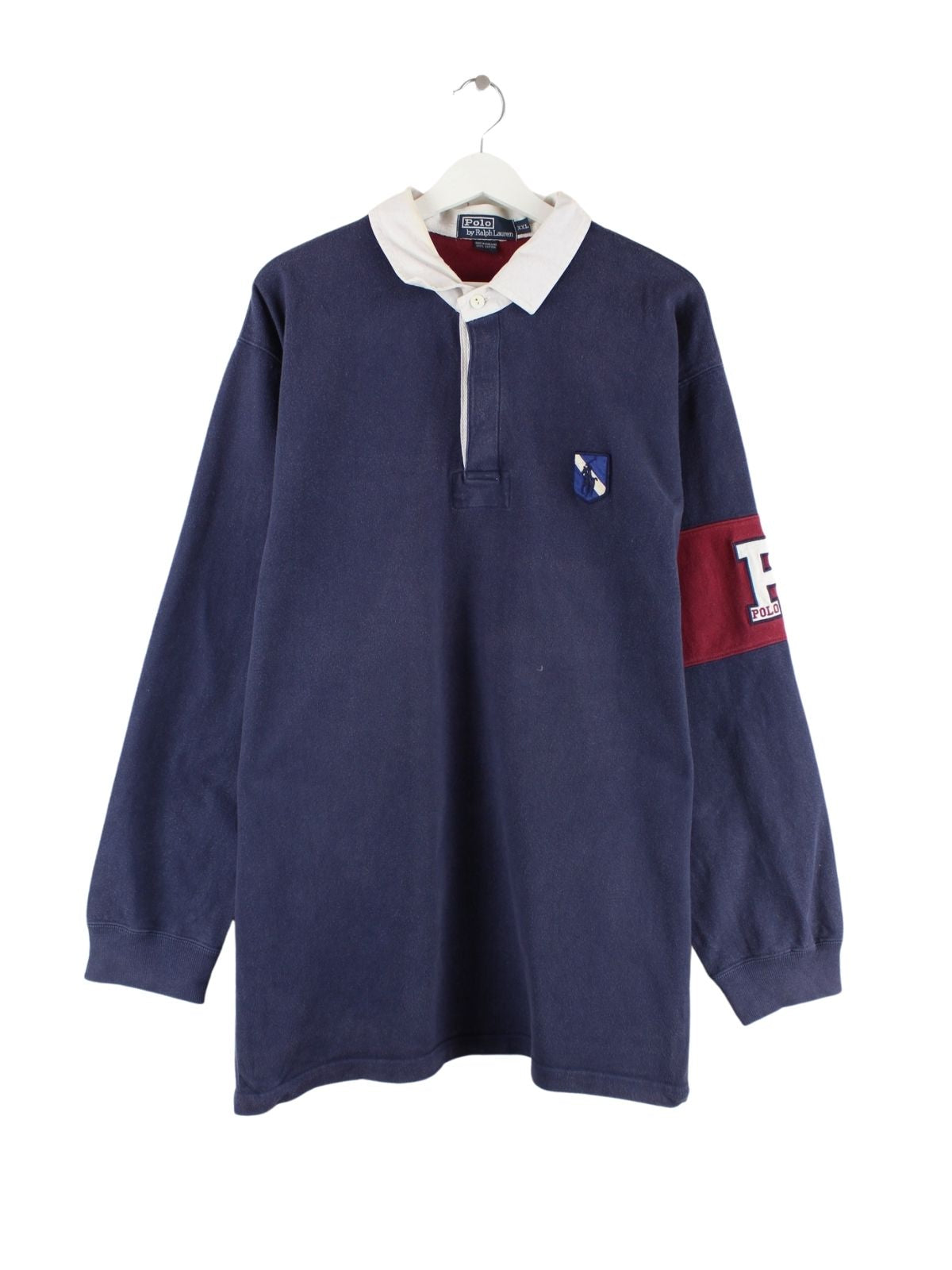 Ralph Lauren 90s Vintage Rugby Langarm Polo Blau 3XL