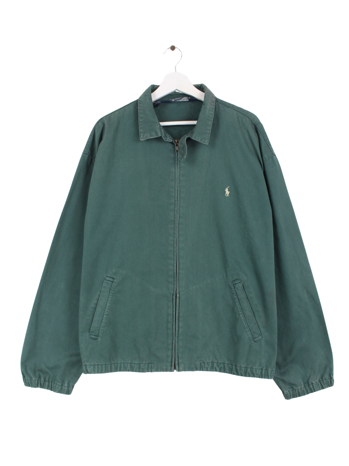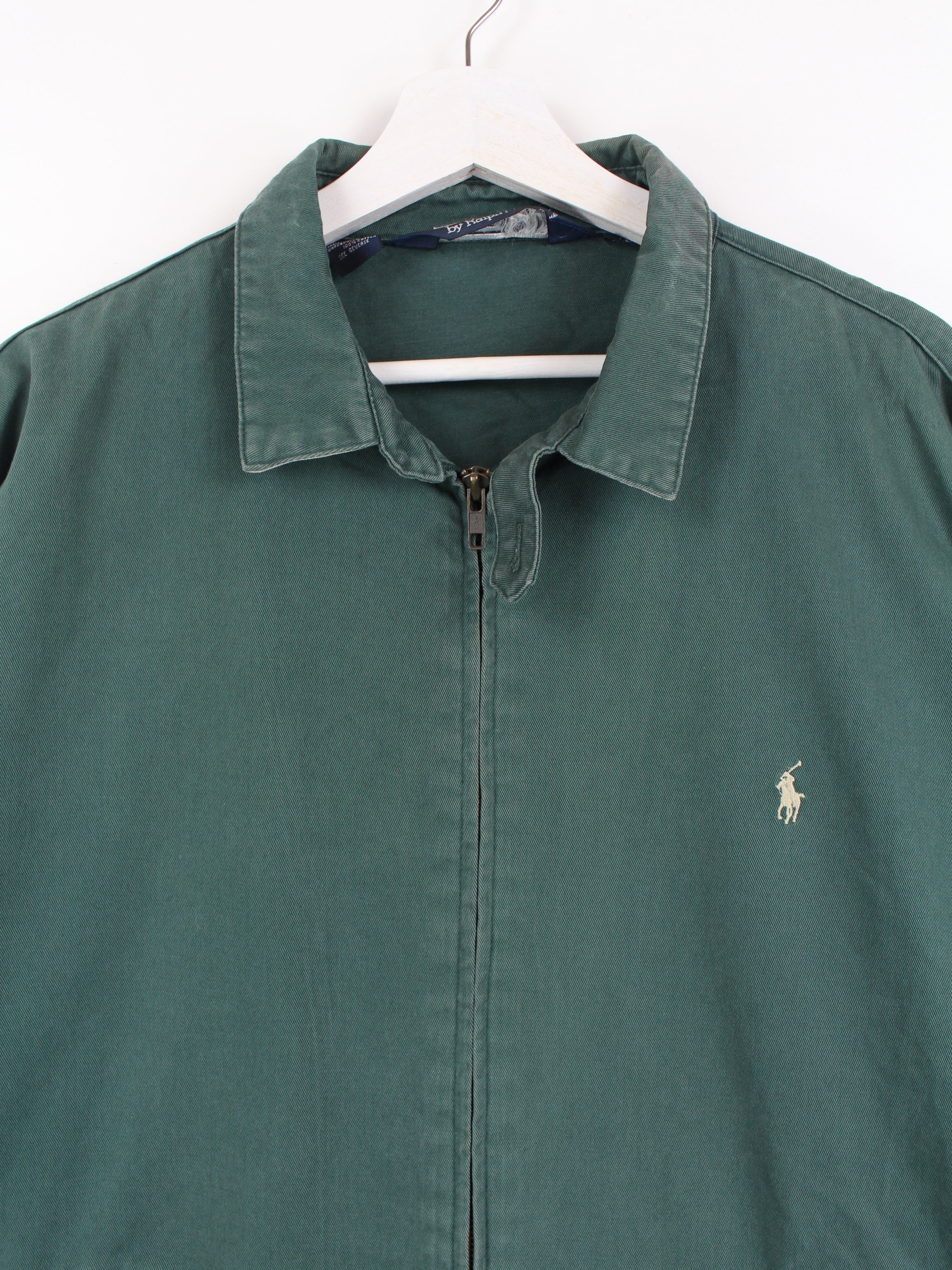 Veste verte Polo Ralph Lauren Harrington avec étiquette beige sur la poitrine.