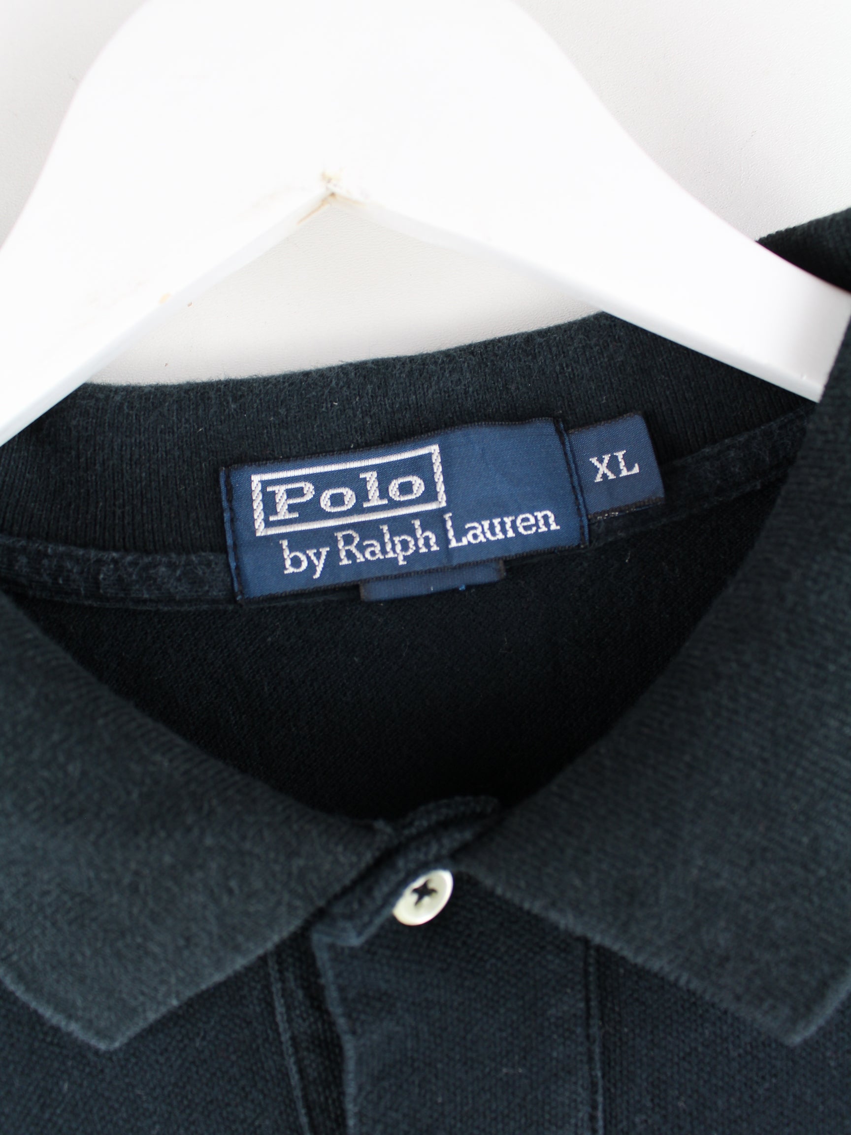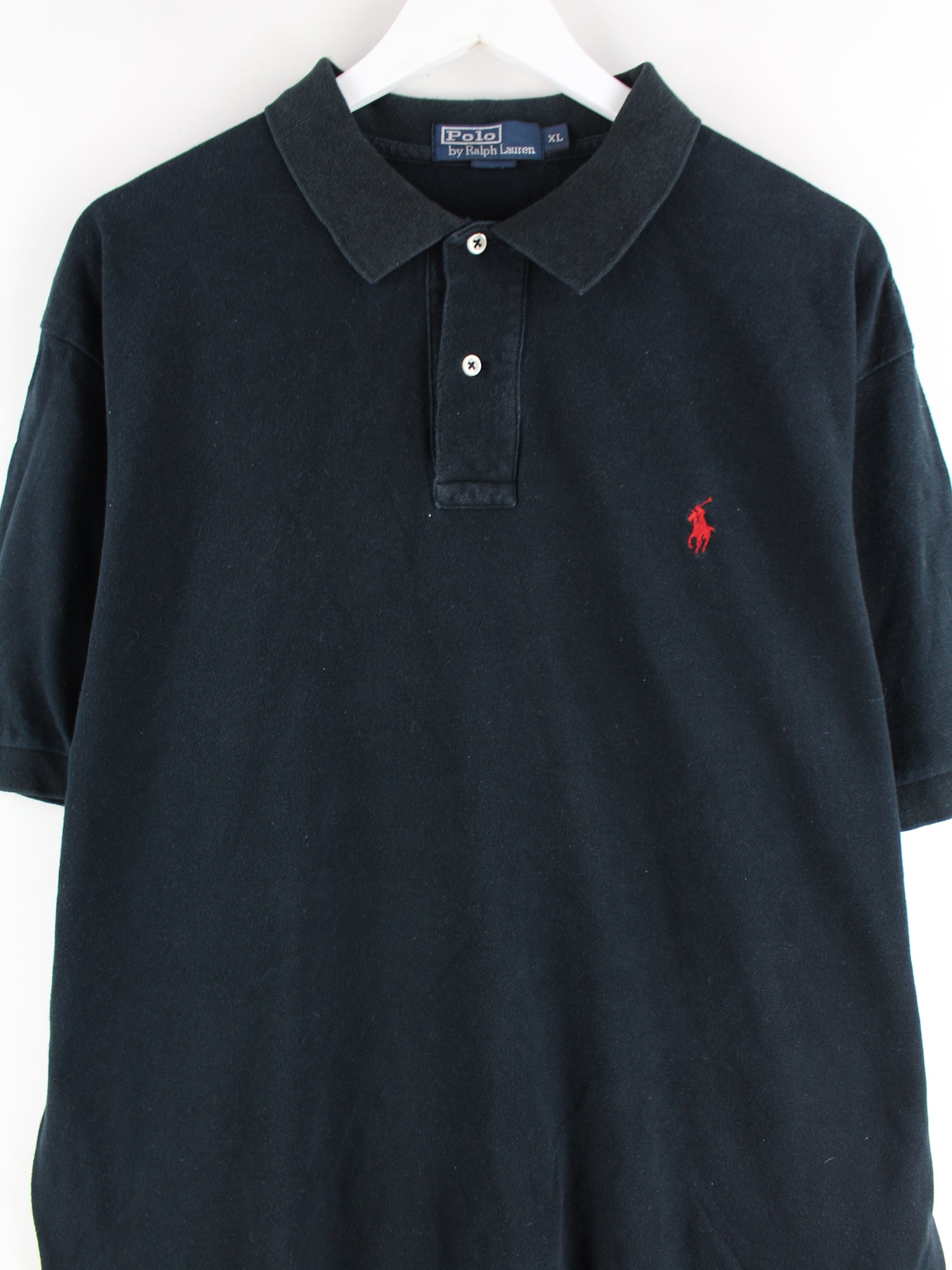 Schwarzes Poloshirt der Brand Ralph Lauren aus Anfang der 2000'er in Größe XL. Es ist aus Baumwolle und in sehr gutem Zustand in Stock.