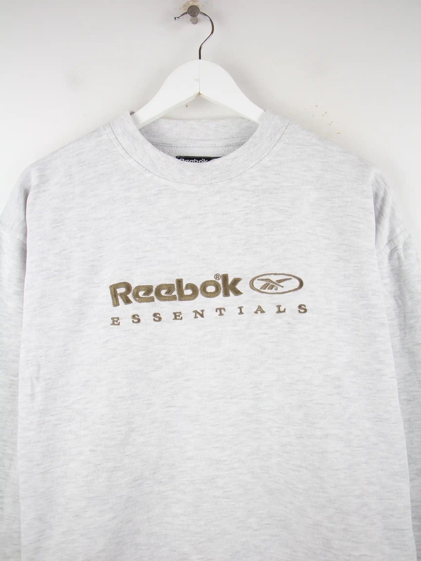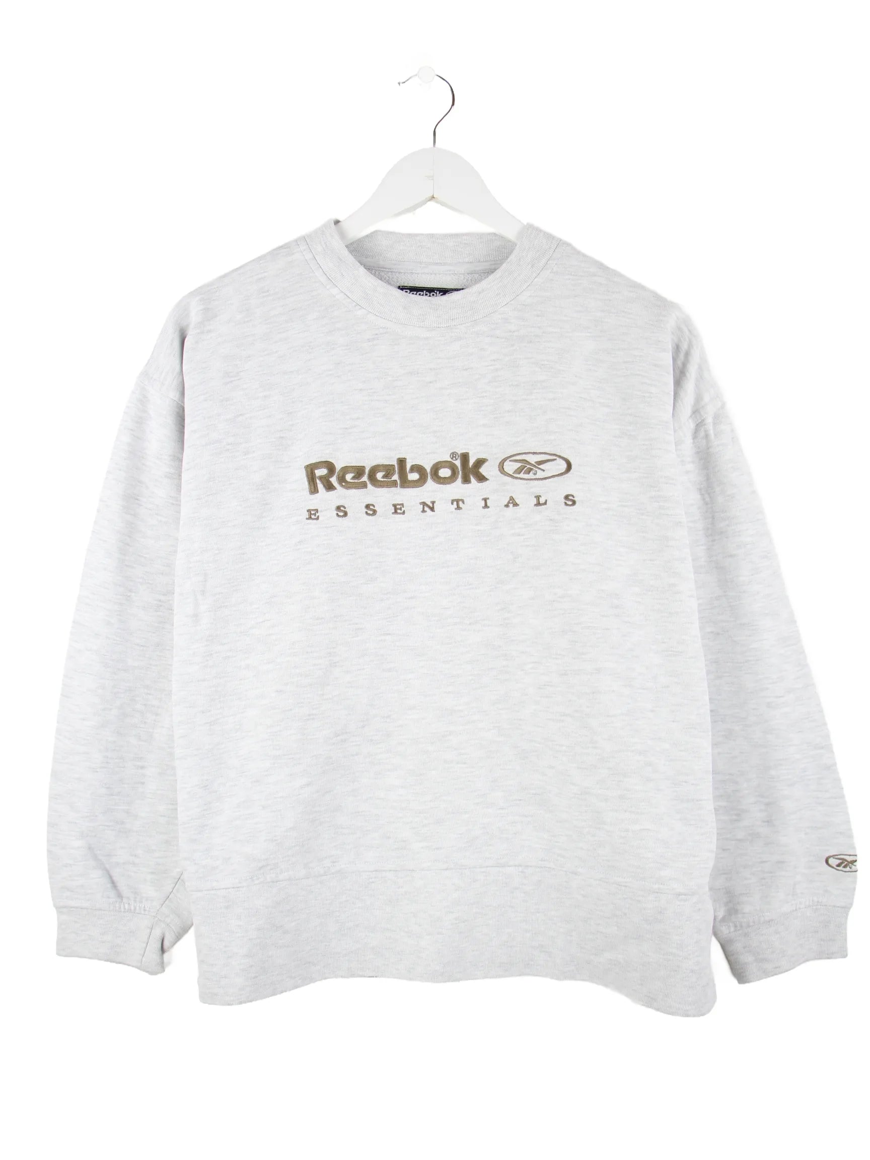 Grauer Sweater der Marke Reebok in Größe XS. Er ist aus einer Baumwollmischung produziert und in sehr gutem Zustand im Angebot.