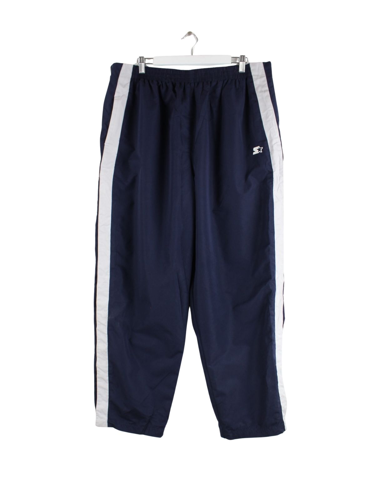Blaue Track Pants vom Label Starter in Größe 3XL. Sie sind aus Synthetik produziert und in sehr gutem Zustand bei uns zu bekommen.