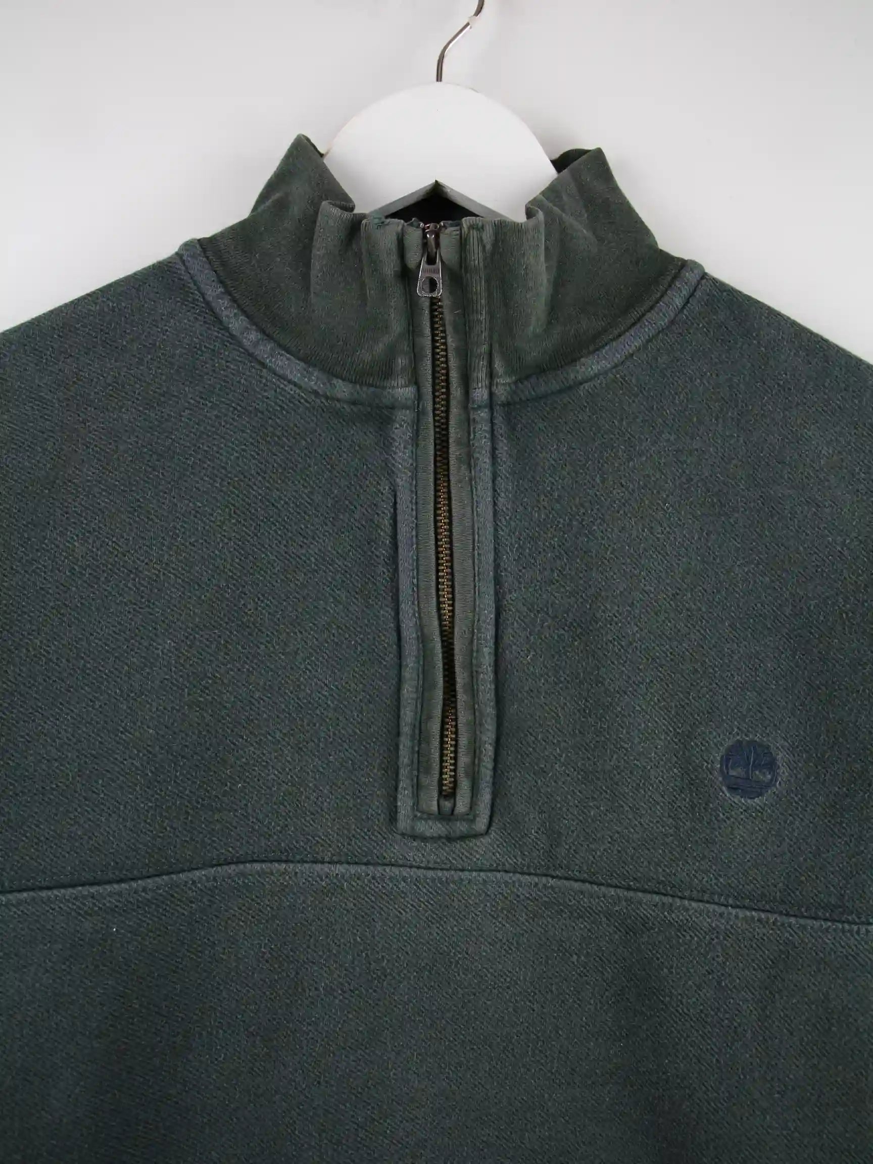 Sweater der Brand Timberland mit half Zip in Größe M. Er ist aus einer Baumwollmischung und in Grün zu bekommen.