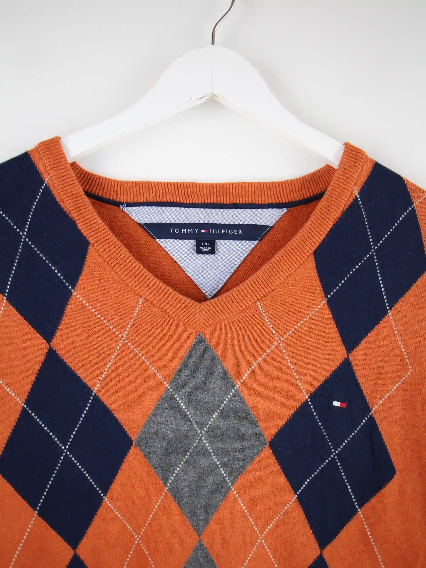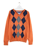 Tommy Hilfiger Argyle Pattern V-Neck Pullover Orange L