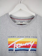 Graues T-Shirt der Marke Tommy Hilfiger in Größe L. Es ist aus Baumwolle gemacht und in sehr gutem Zustand bei uns vorrätig. Mit schönem Print.