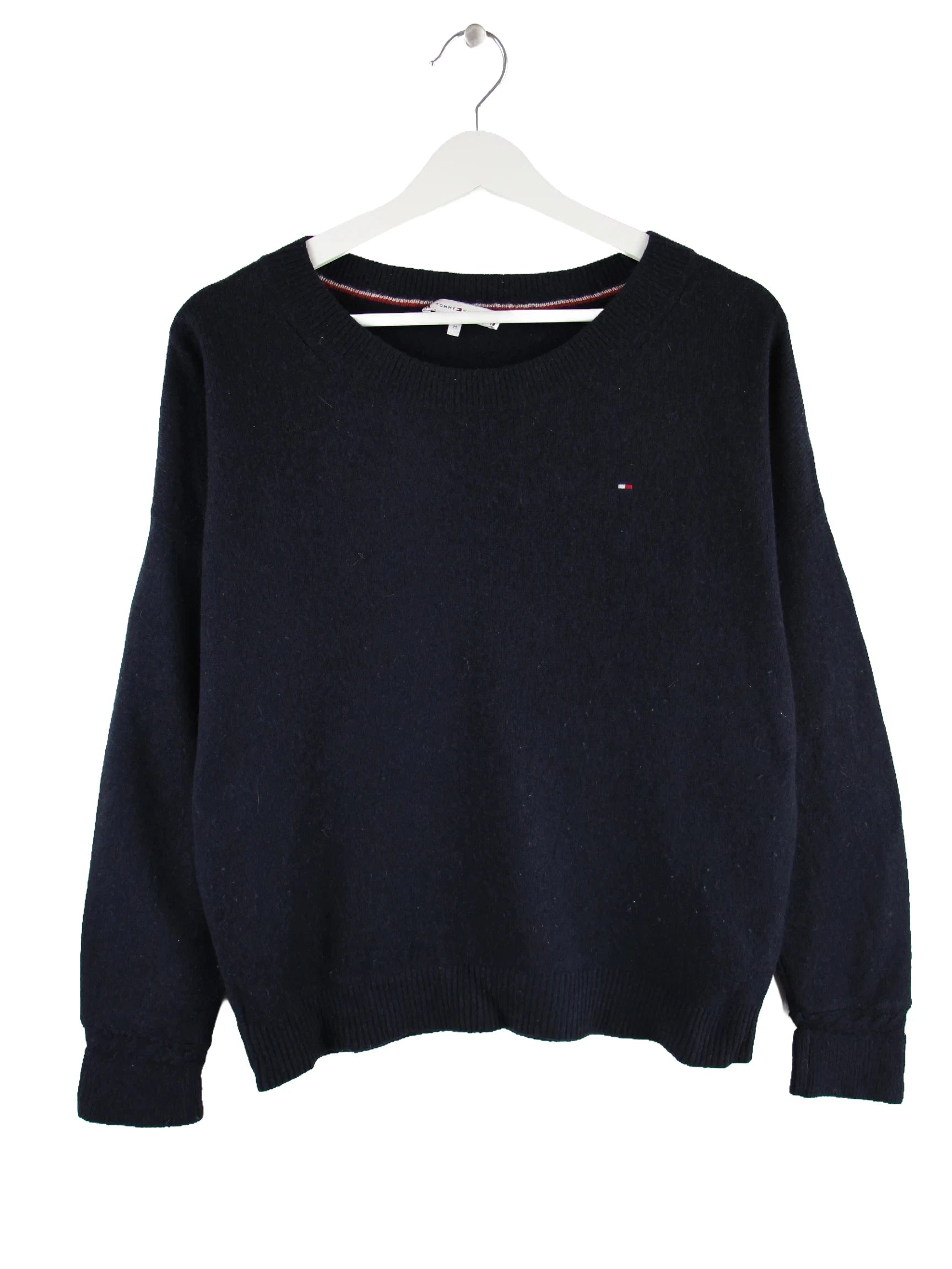 Schwarzer Pullover von Tommy Hilfiger in Größe M. Er ist aus Wolle gefertigt und in gutem Zustand in Stock.