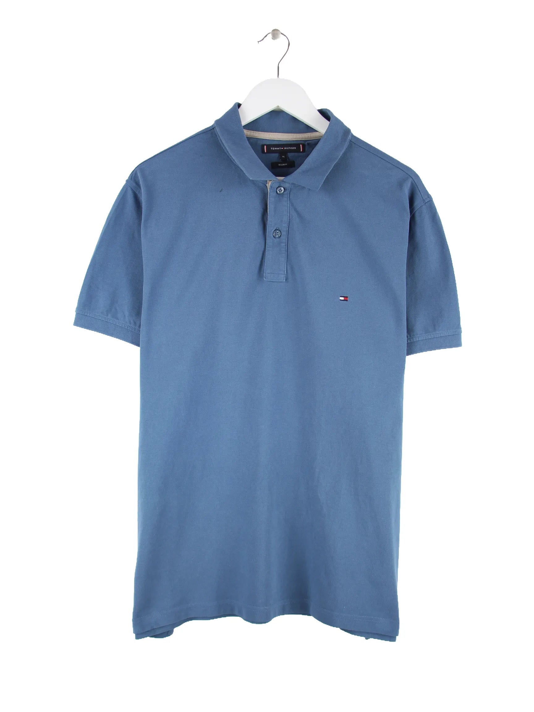 Poloshirt der Marke Tommy Hilfiger in Größe XL. Es ist aus Baumwolle und in Blau in Stock.
