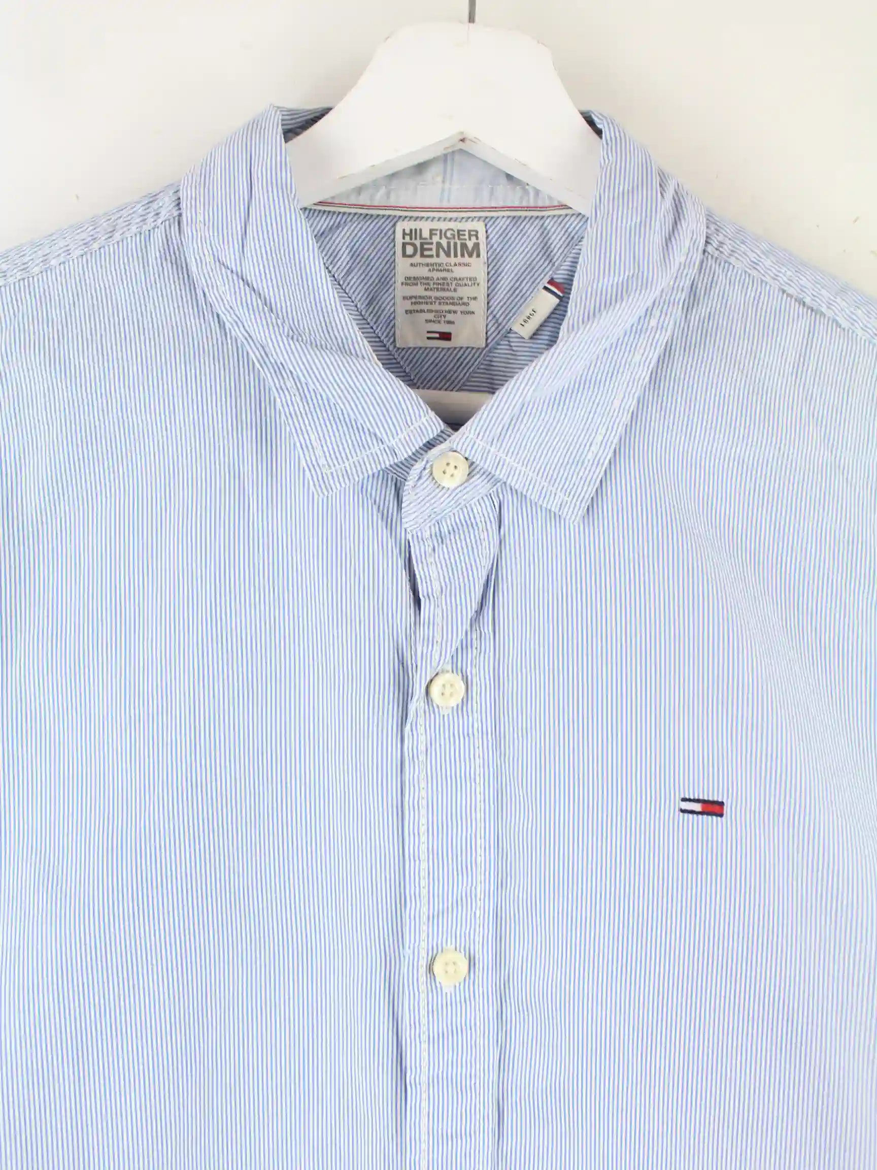 Hemd aus dem Hause Tommy Hilfiger in Größe L. Es ist aus Baumwolle gefertigt und in Blau bei uns zu bekommen.