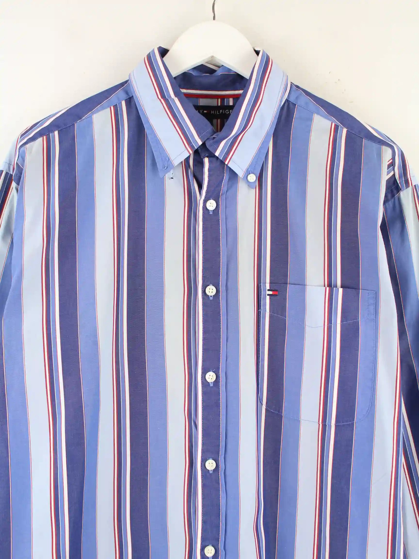 Blaues Hemd des Labels Tommy Hilfiger in Größe L. Es ist aus Baumwolle produziert und in sehr gutem Zustand im Angebot.