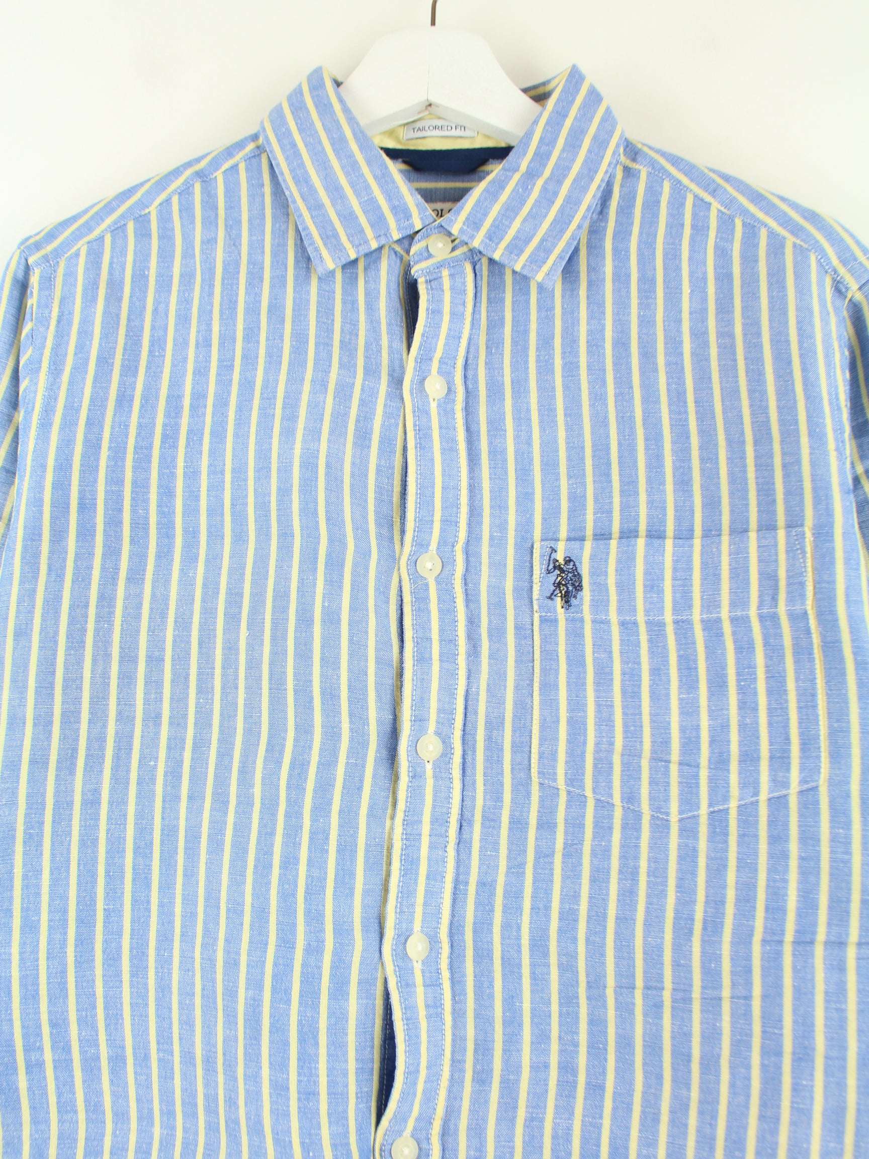 U.S. Polo ASSN. 90s Vintage Striped Hemd Blau M