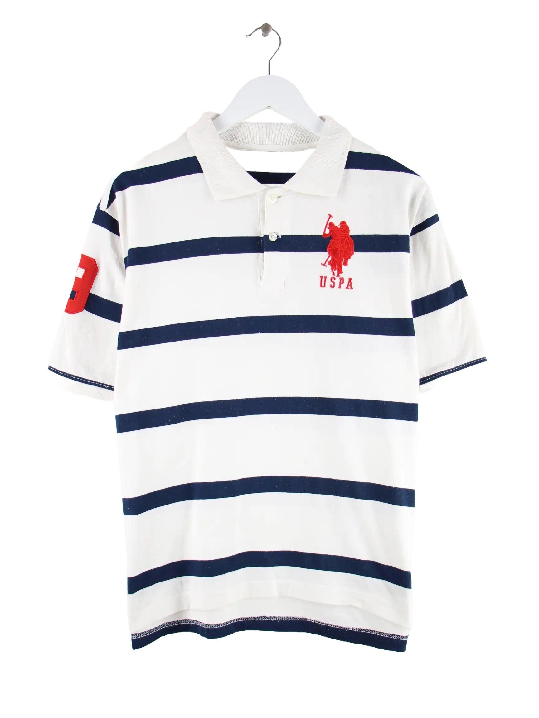 Weißes Poloshirt des Labels U.S. Polo ASSN. in Größe M. Es ist aus Baumwolle angefertigt und in gutem Zustand im Bestand.