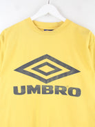 T-Shirt vom Label Umbro in Größe S aus den 90'ern. Es ist aus Baumwolle hergestellt und in Gelb im Angebot. Mit seltenem Vintage Print.